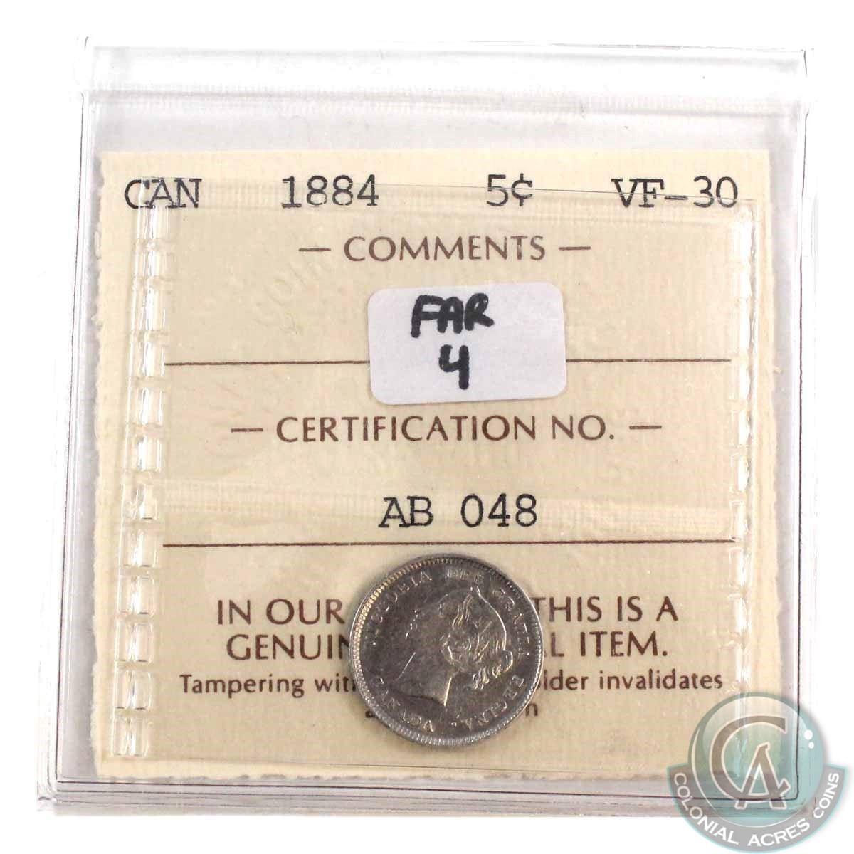 5-cent 1884 Far 4 ICCS Certified VF-30