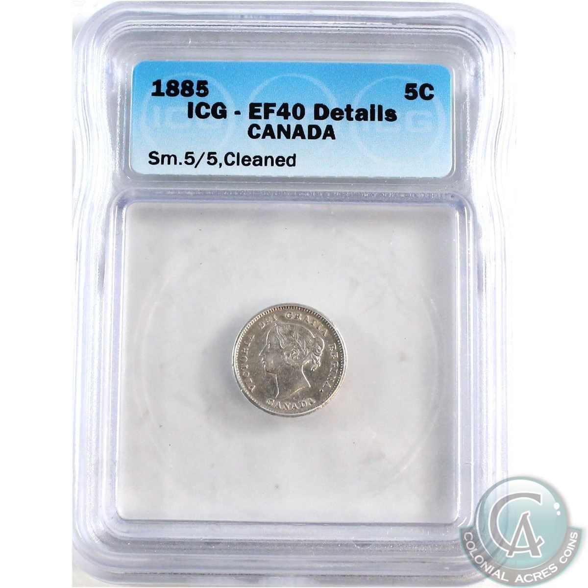 5-cent 1885 Small 5/5; Cleaned ICG Certified EF-40