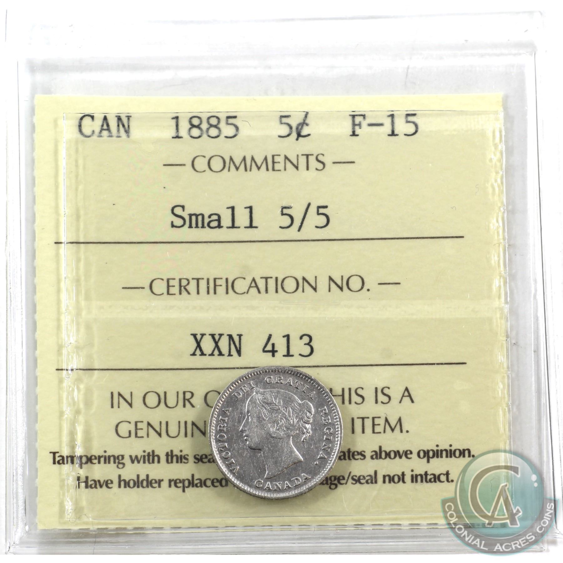 5-cent 1885 Small 5/5 ICCS Certified F-15.