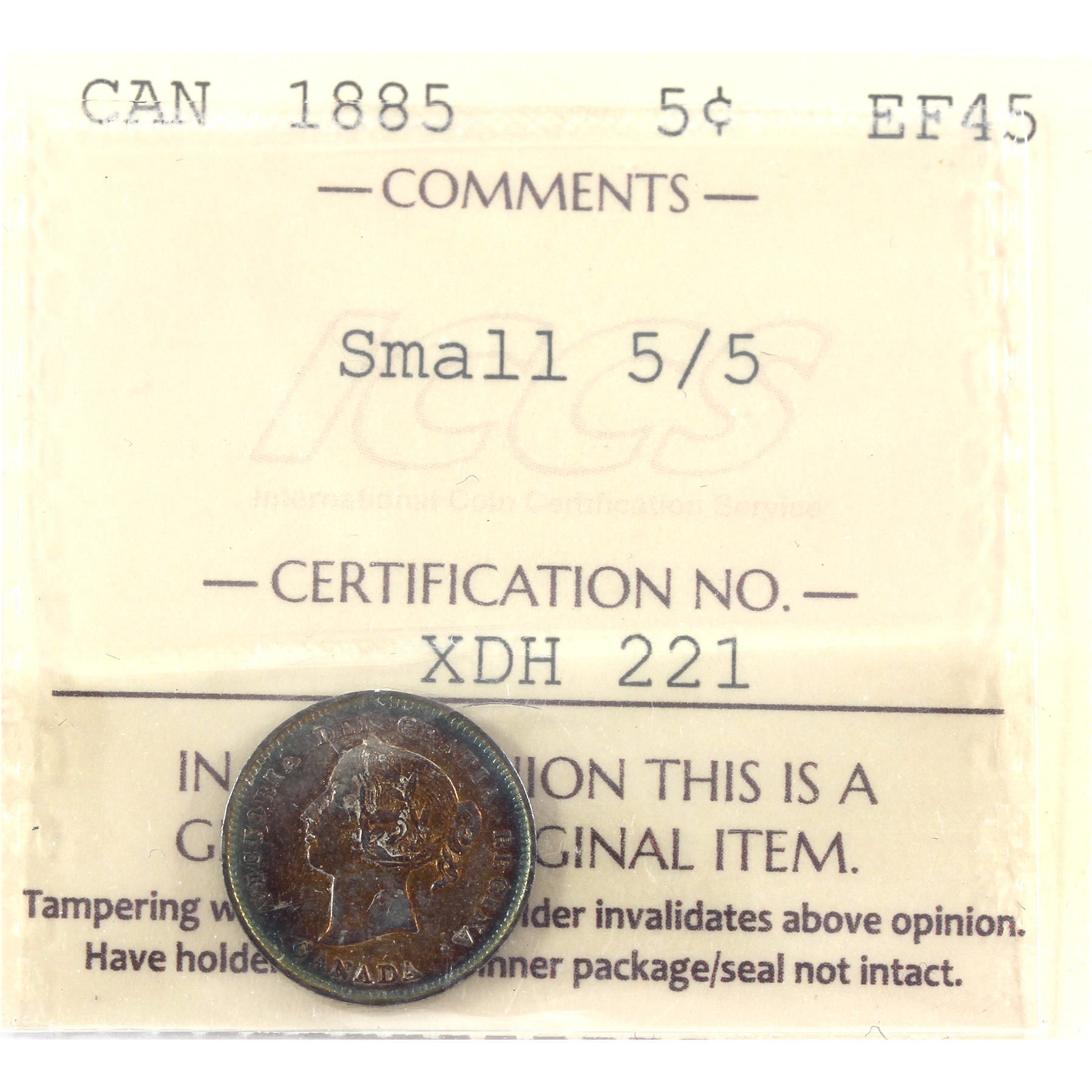 5-cent 1885 Small 5/5 ICCS EF45