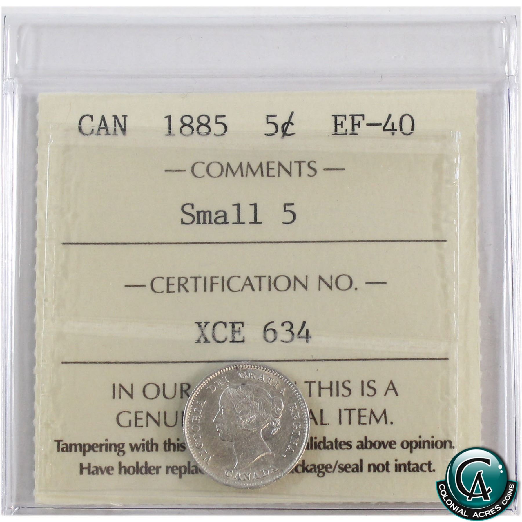 5-cent 1885 Small 5 ICCS Certified EF-40