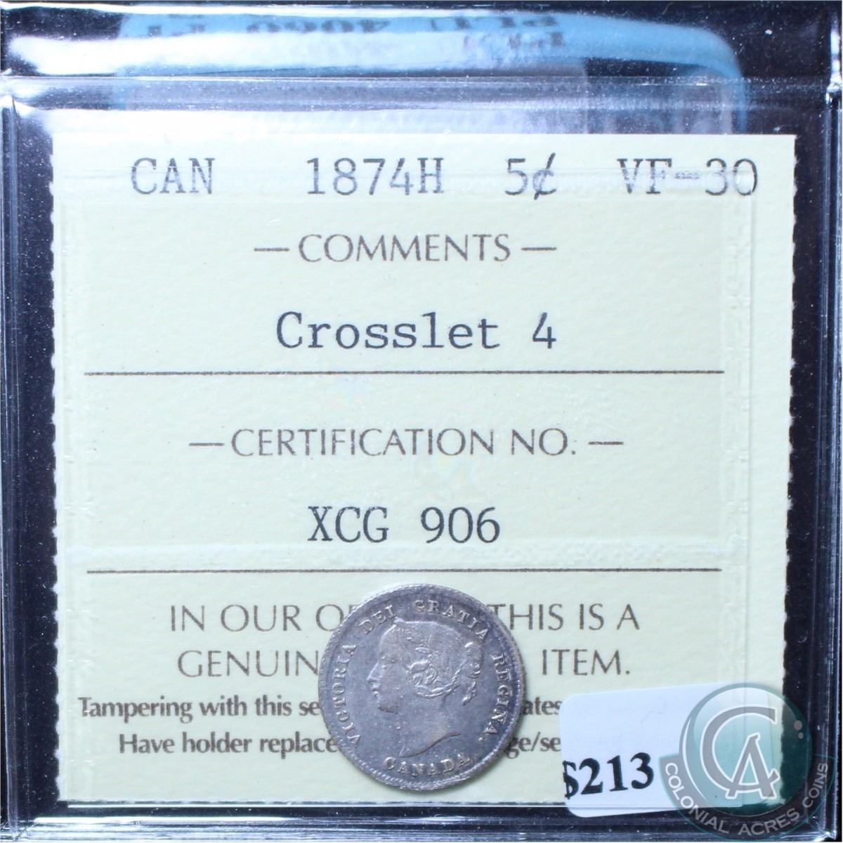 5-cent 1894 Crosslet 4 ICCS Certified VF-30