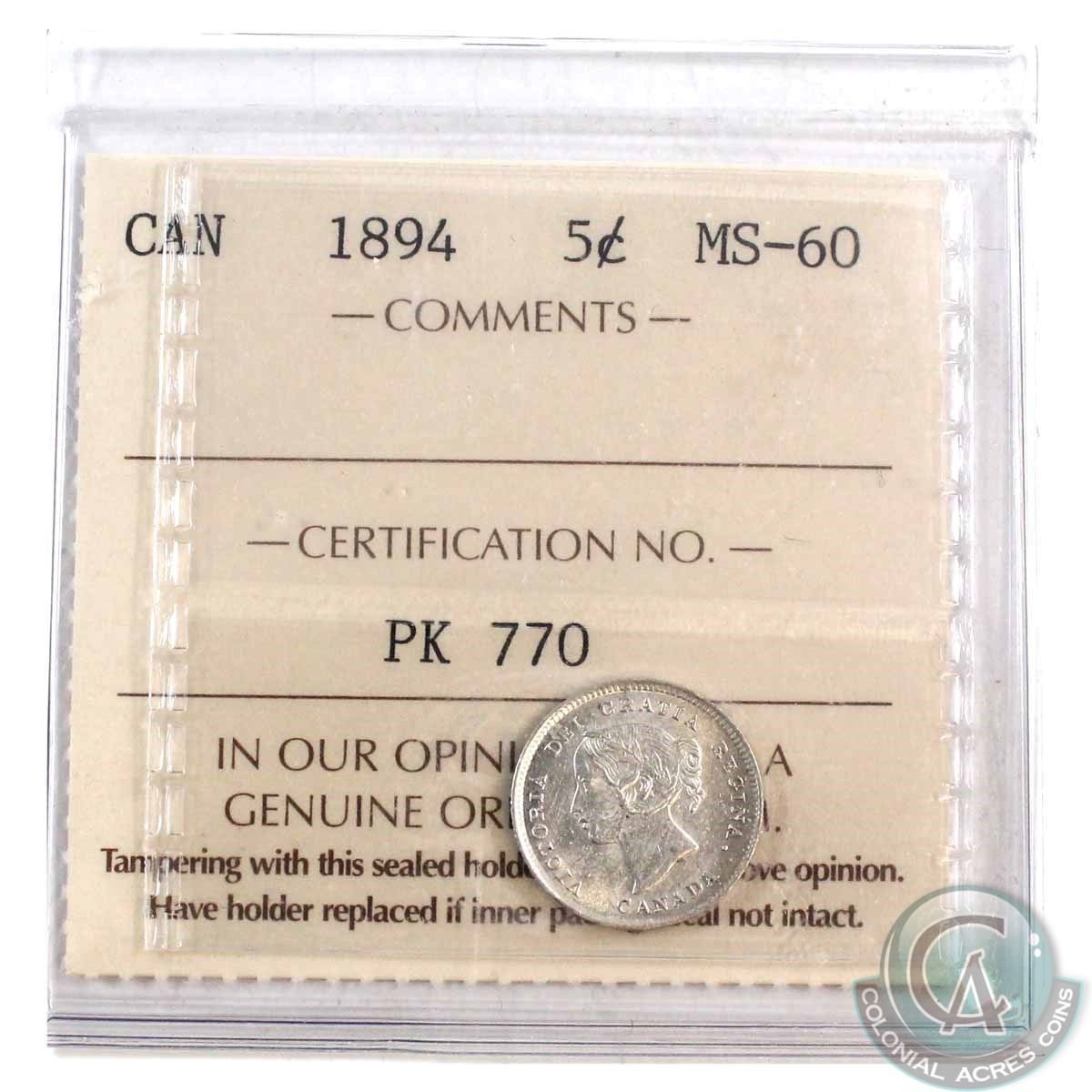 5-cent 1894 ICCS Certified MS-60