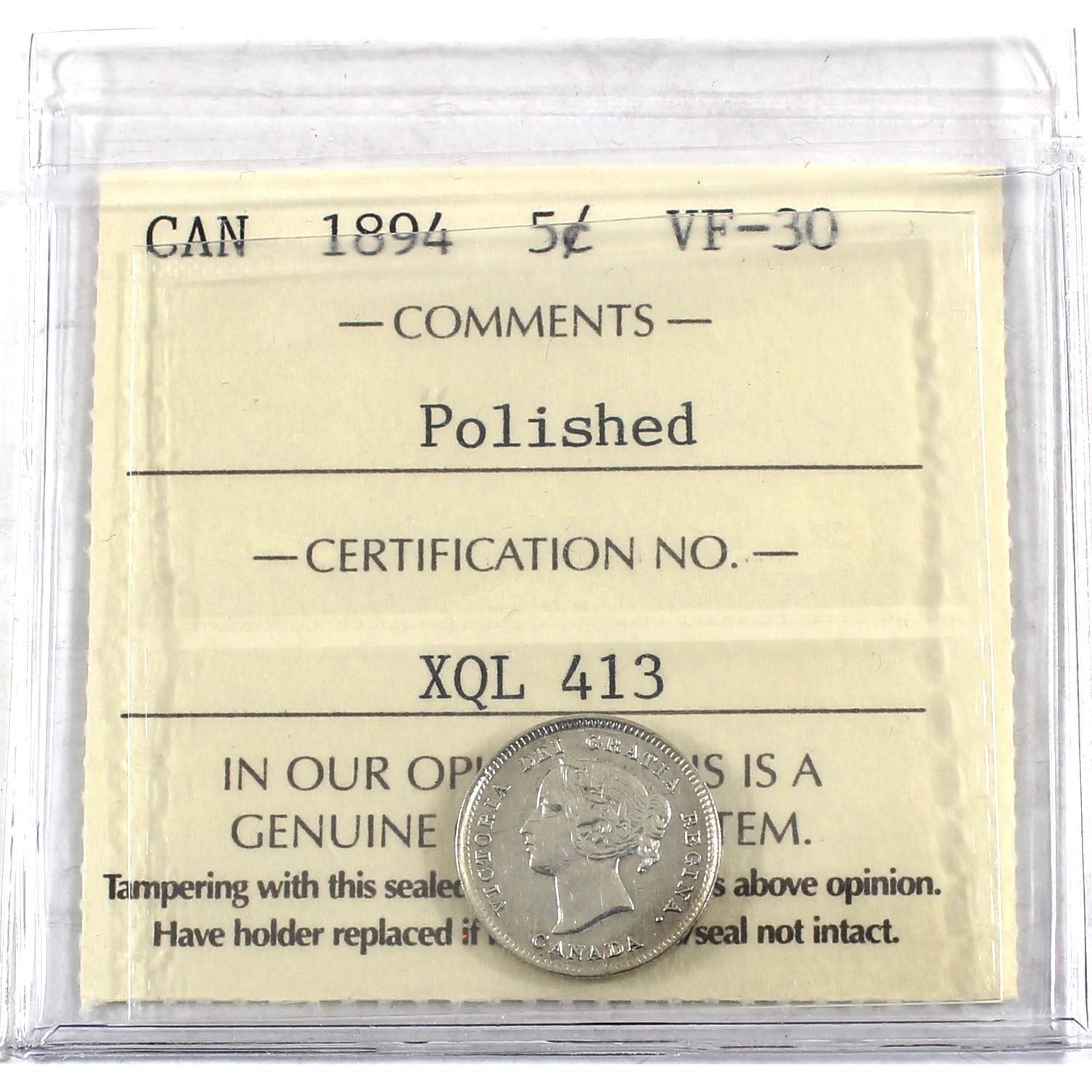 5-cent 1894 ICCS Certified VF-30 (polished)