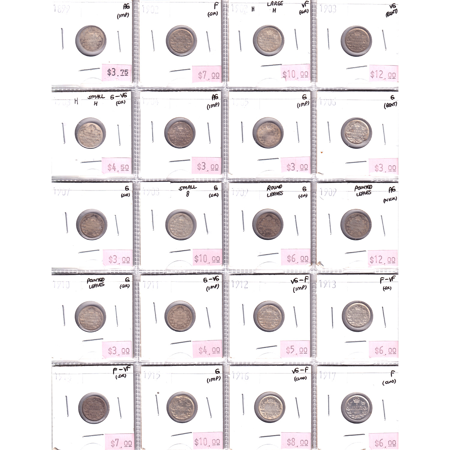 INCLUDES: 1902H Large H VF, 1909 Pointed Leaves AG, 1914 F-VF & More!! Sold as is; please see images for details.20pcs.