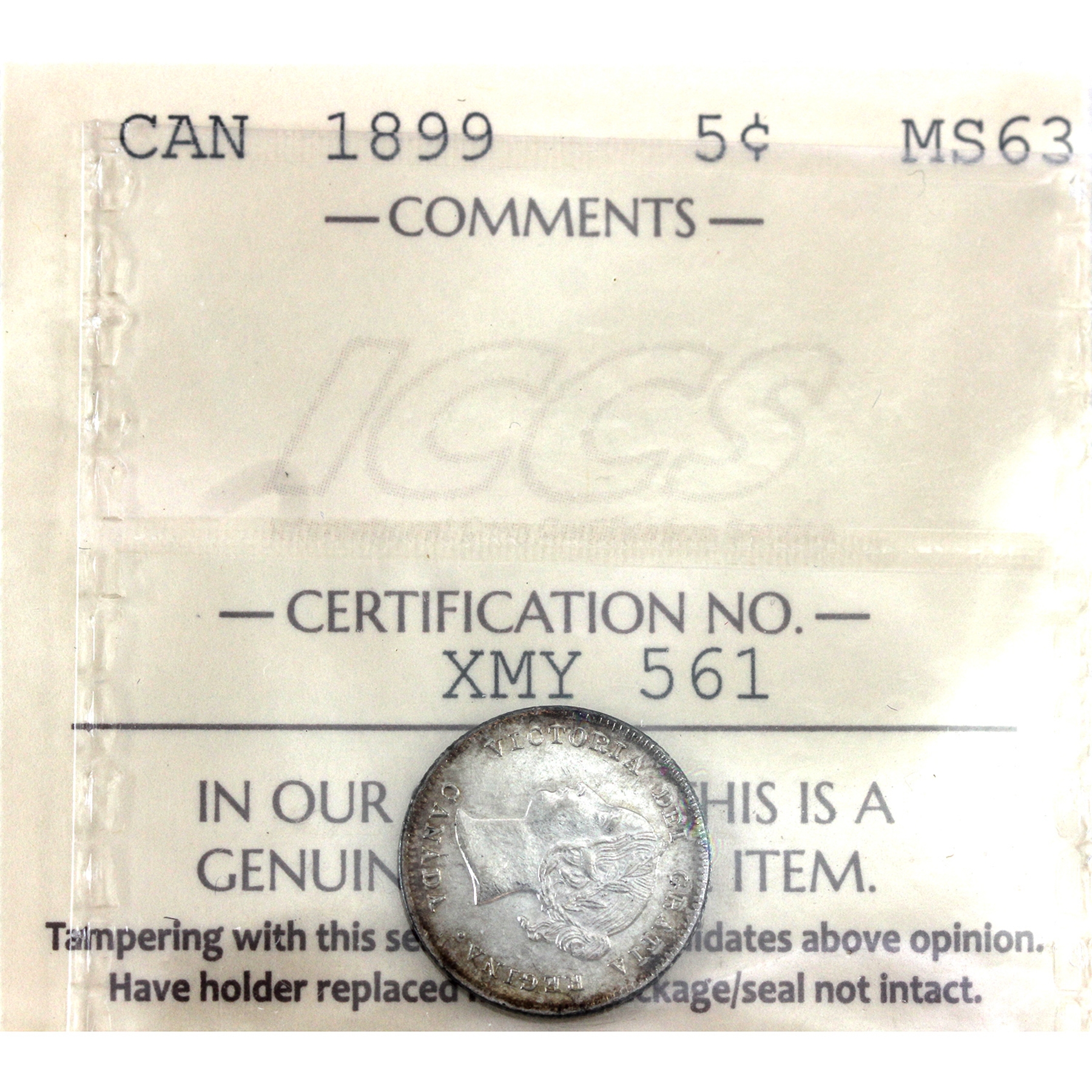 5-cent 1899 ICCS MS63