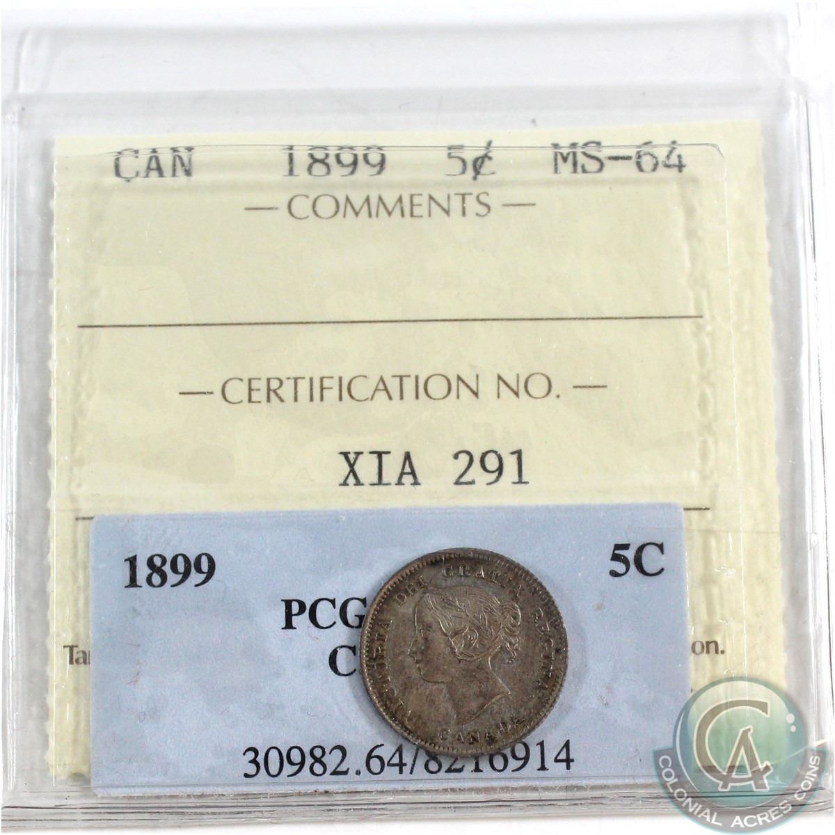 5-cent 1899 ICCS & PCGS Certified MS-64 (Cross Graded)