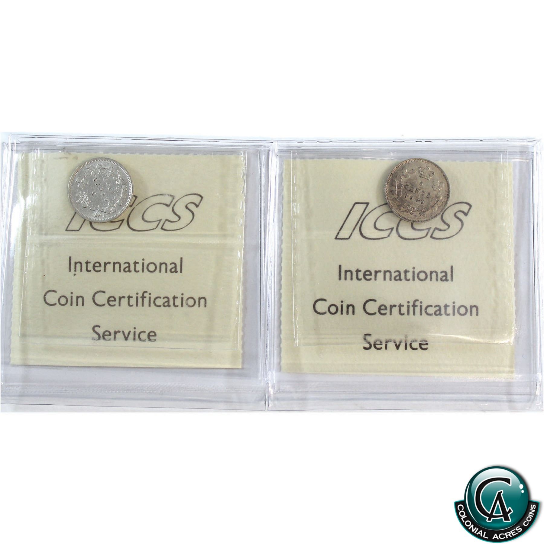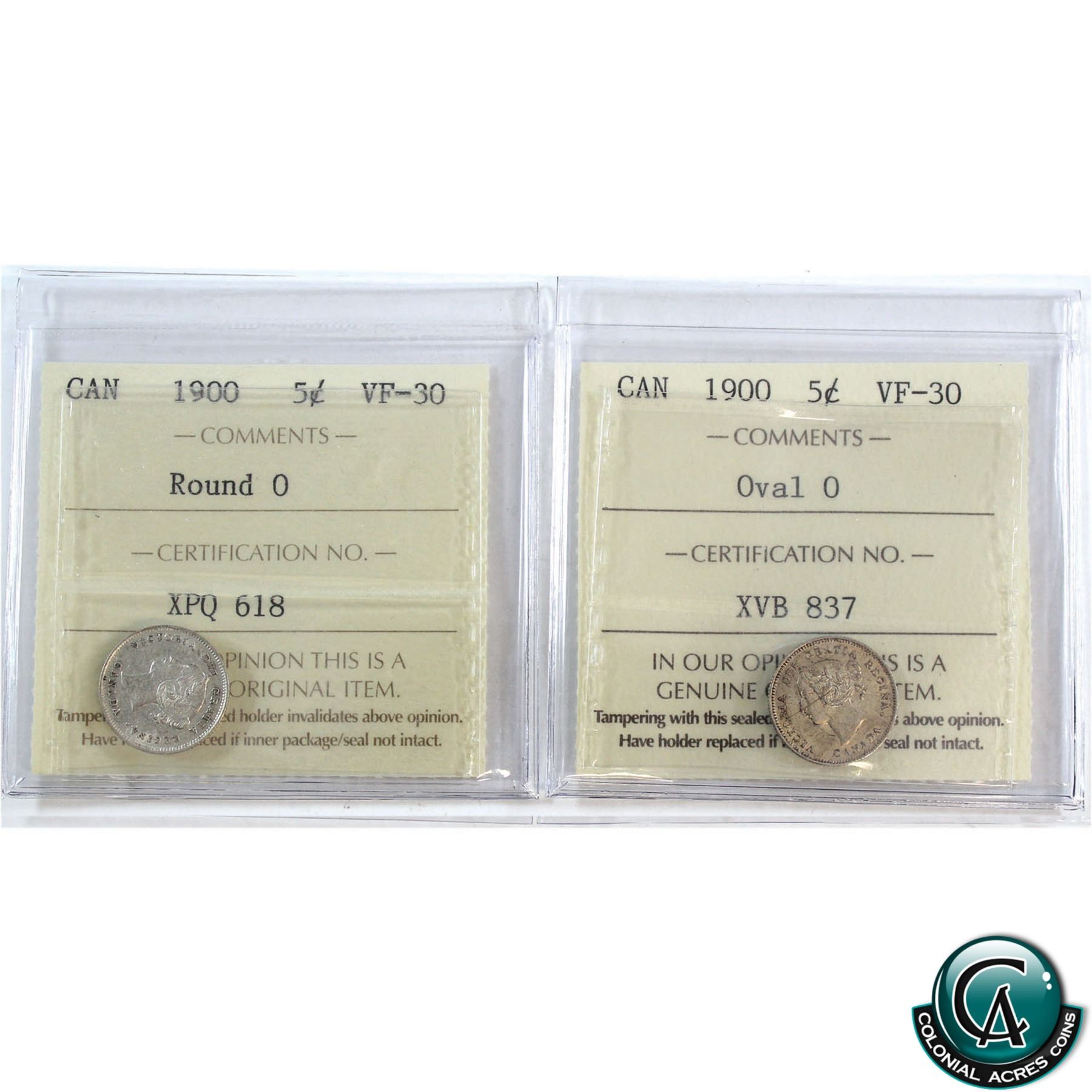 5-cent 1900 Round 0 & 1900 Oval 0 ICCS Certified VF-30. 2pcs