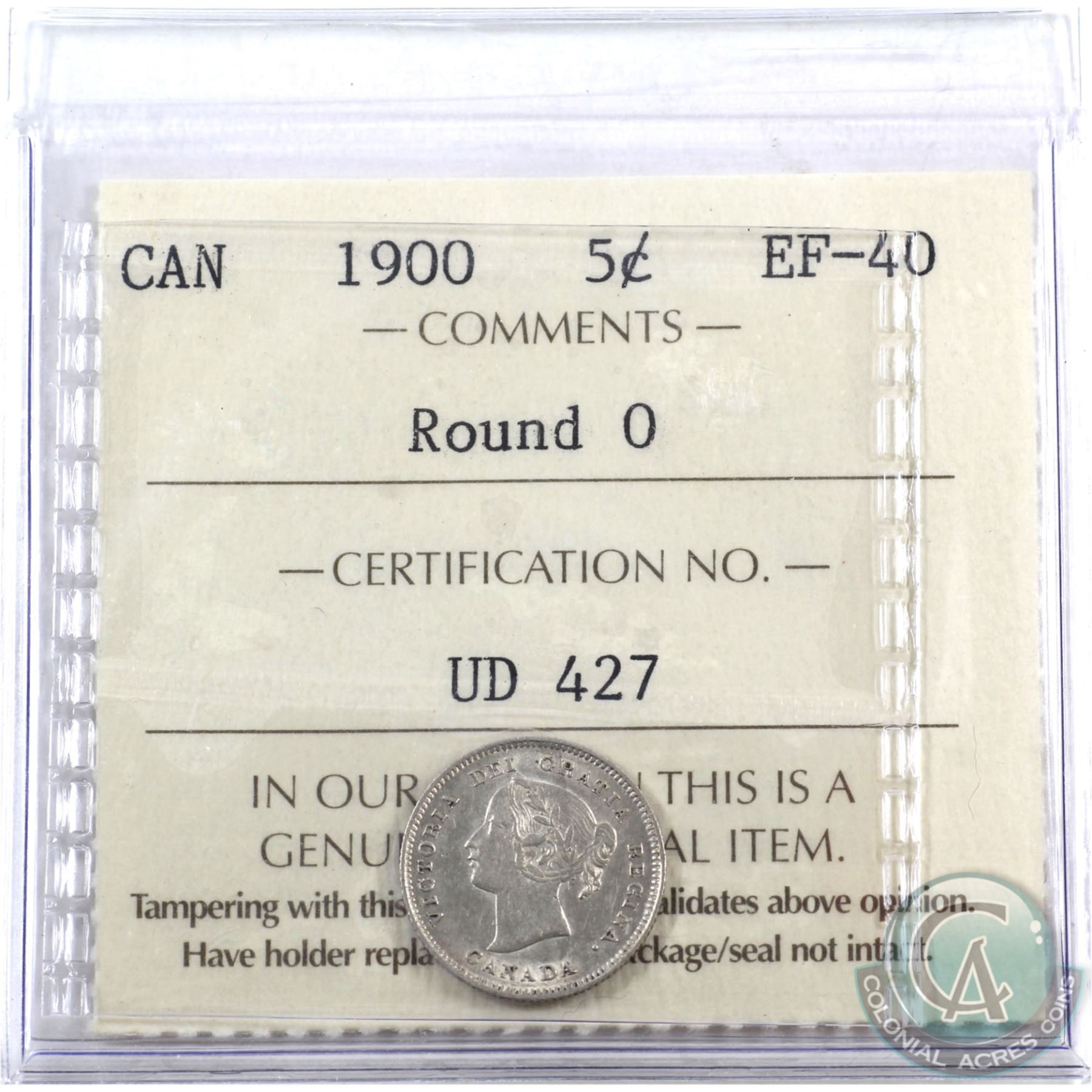 5-cent 1900 Round 0 ICCS Certified EF-40