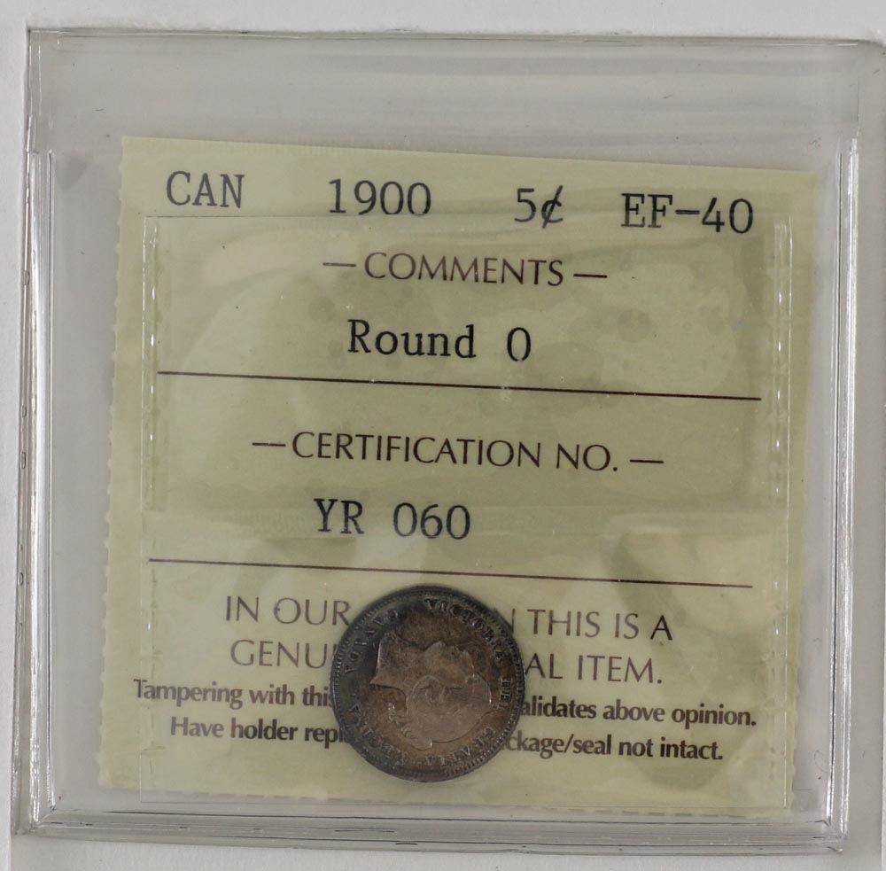 5-cent 1900 round '0' ICCS EF40. Rainbow toning