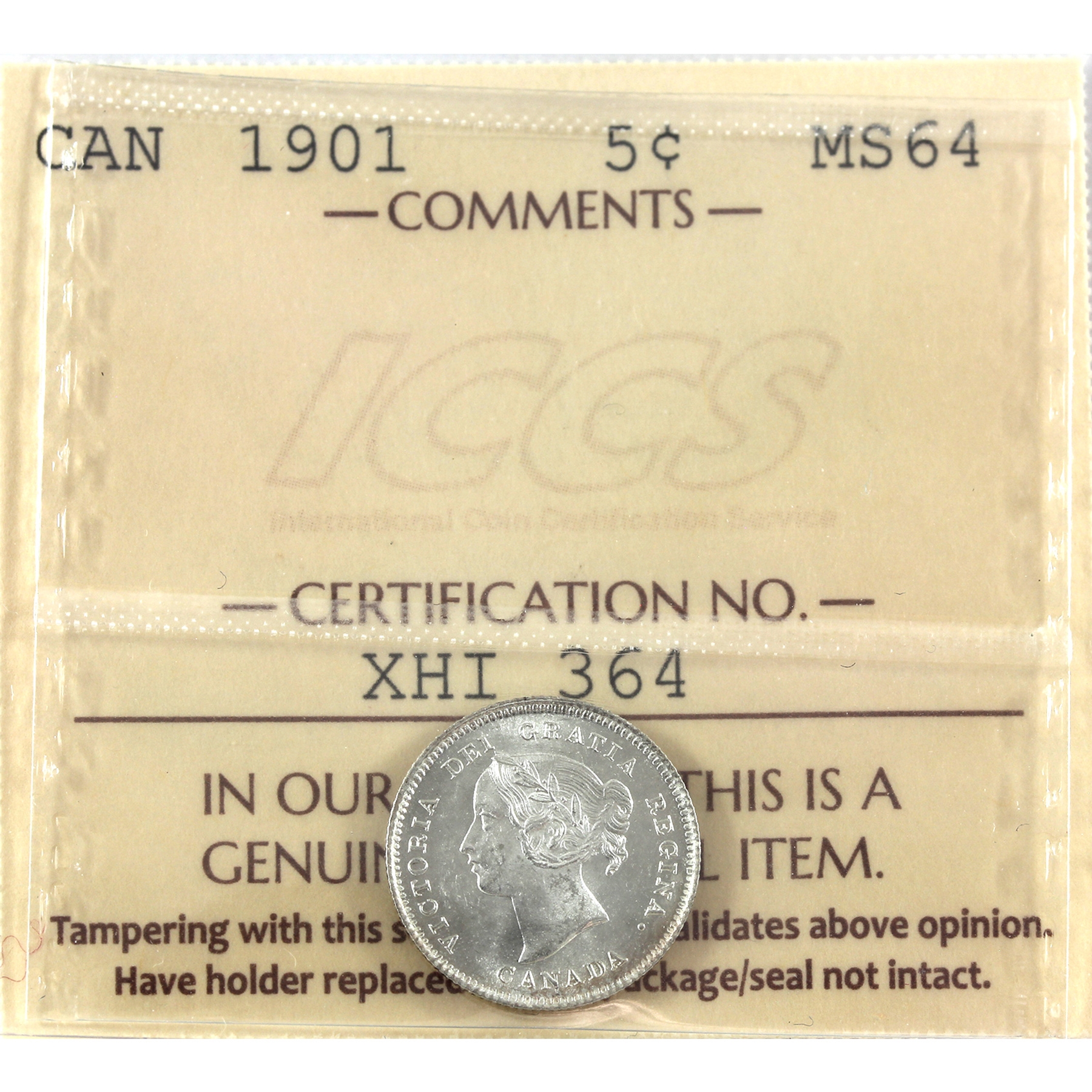 5-cent 1901 ICCS MS64