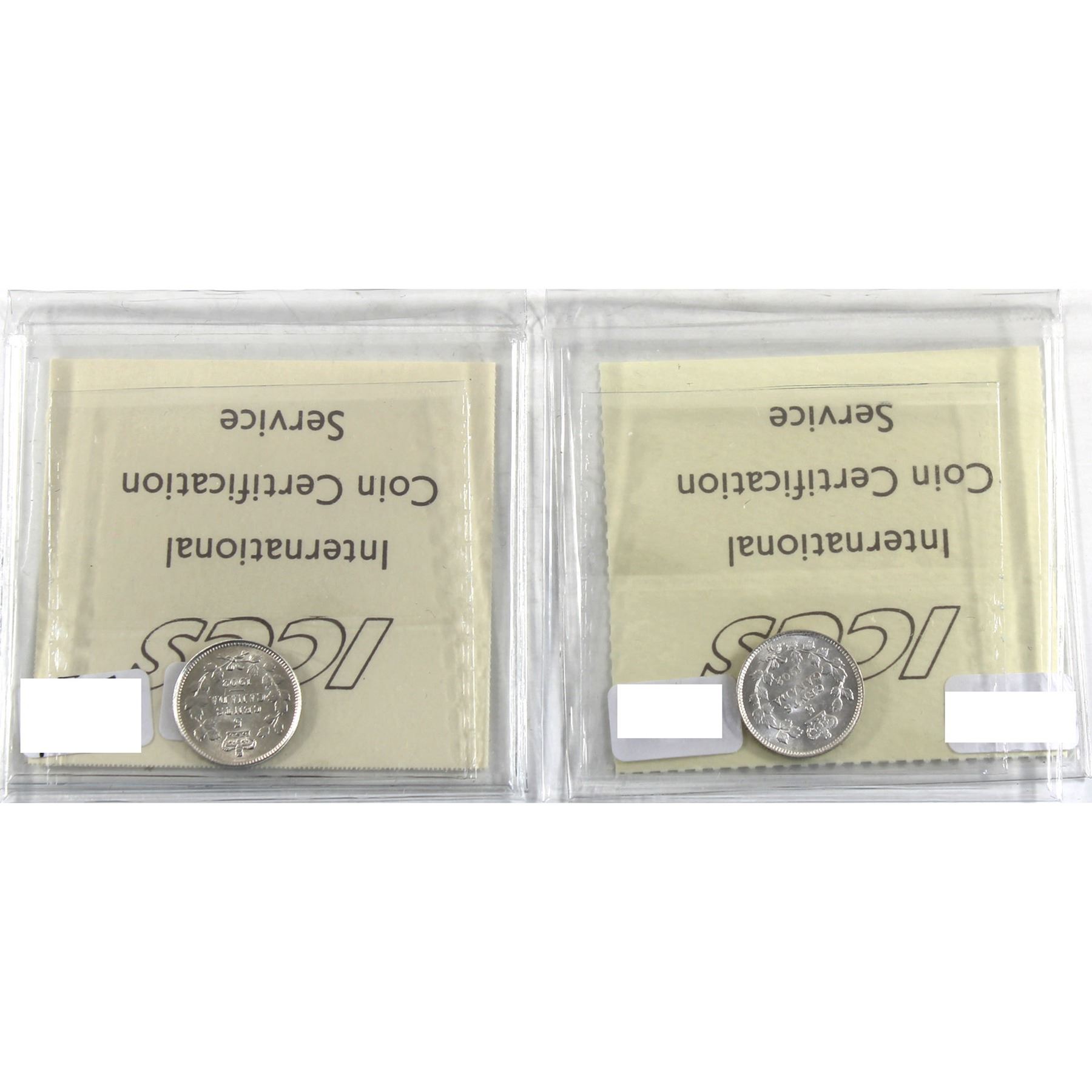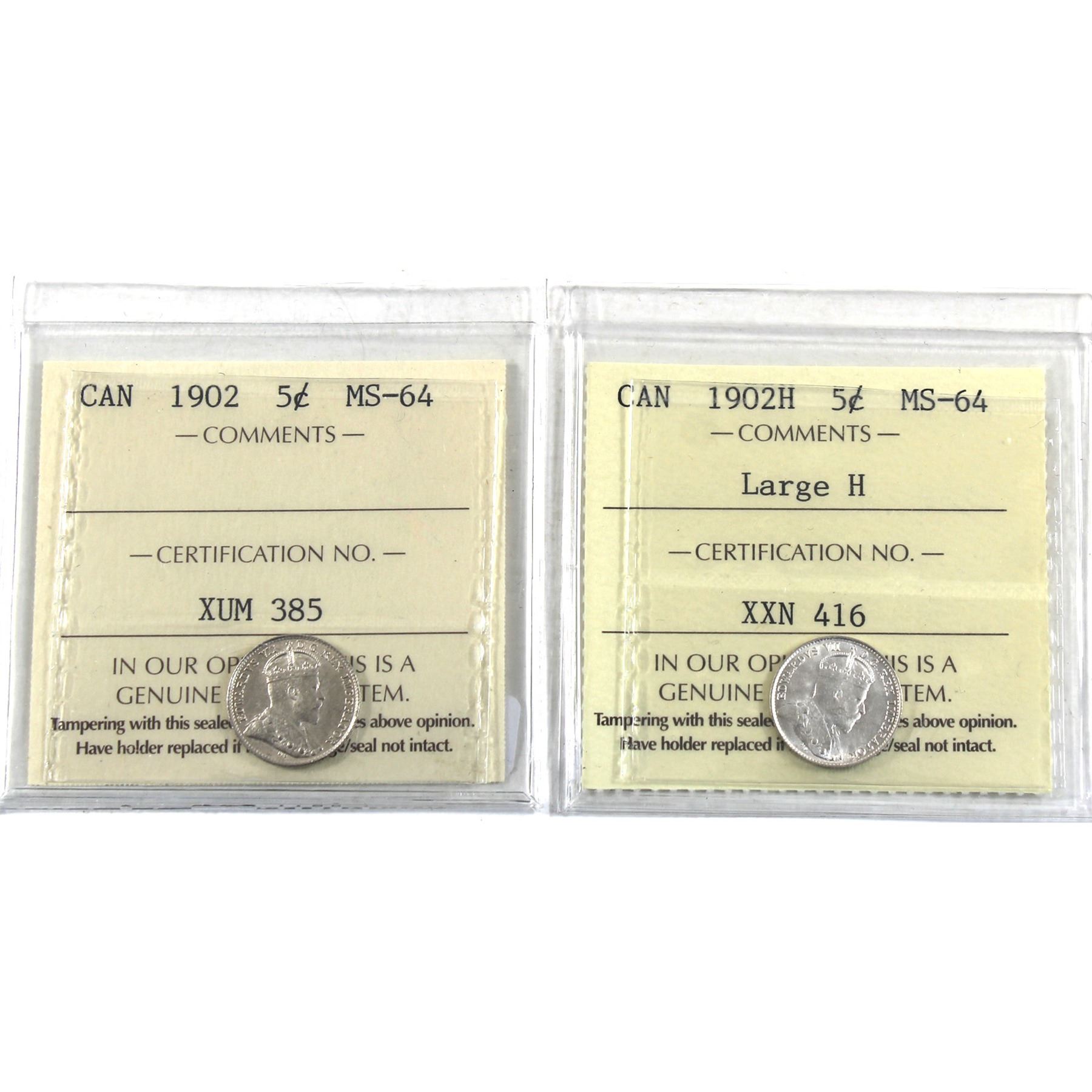 5-cent 1902 & 1902H Large H ICCS Certified MS-64. 2pcs.