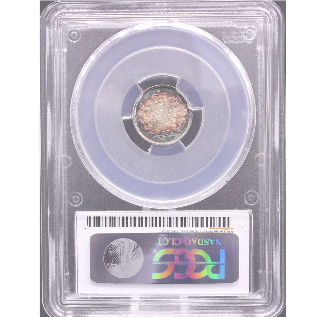 5-cent 1902H Large H PCGS Certified MS67!! A Superior grade coin with Choice bull's eye toning and caramel Lustre. This is a Solo Top 2 Graded coin with only 1 coin ever graded higher and no other coins graded by PCGS or ICCS in this Grade.