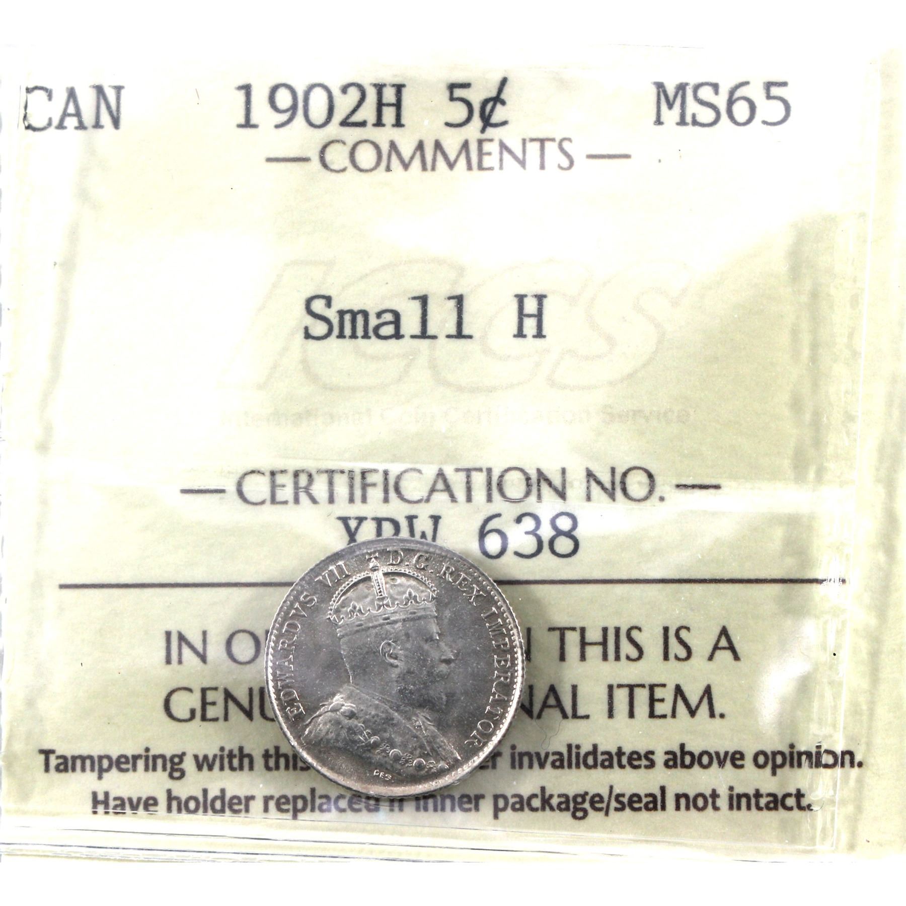 5-cent 1902H Small H ICCS Certified MS-65! 'Caramel Luster throughout'