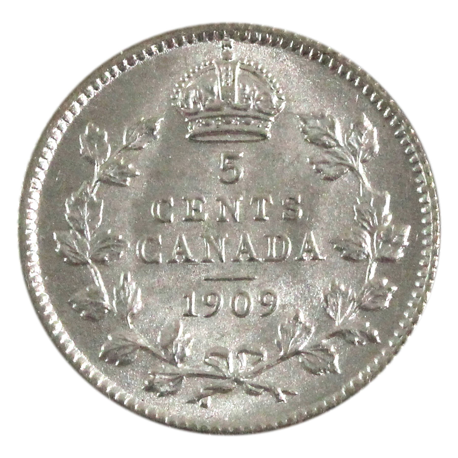 5-cent 1909 Round Leaves BU