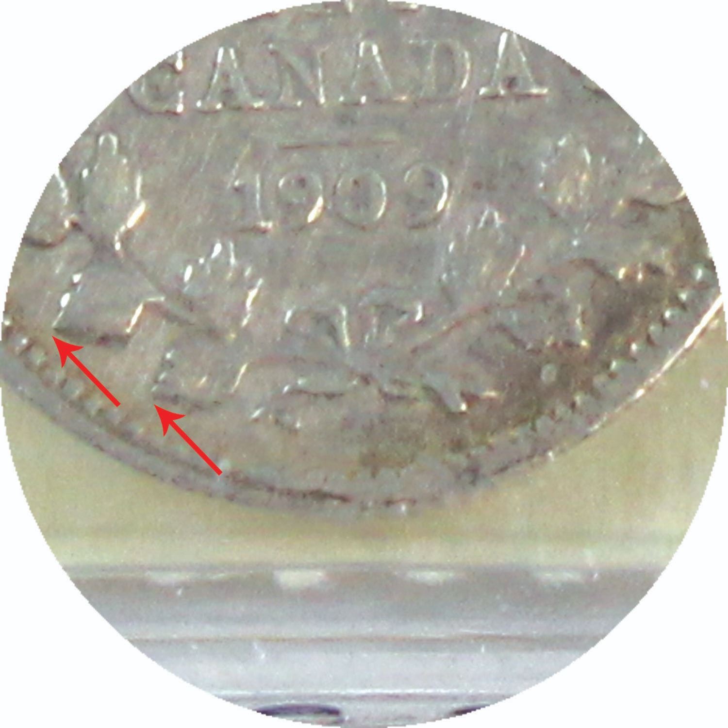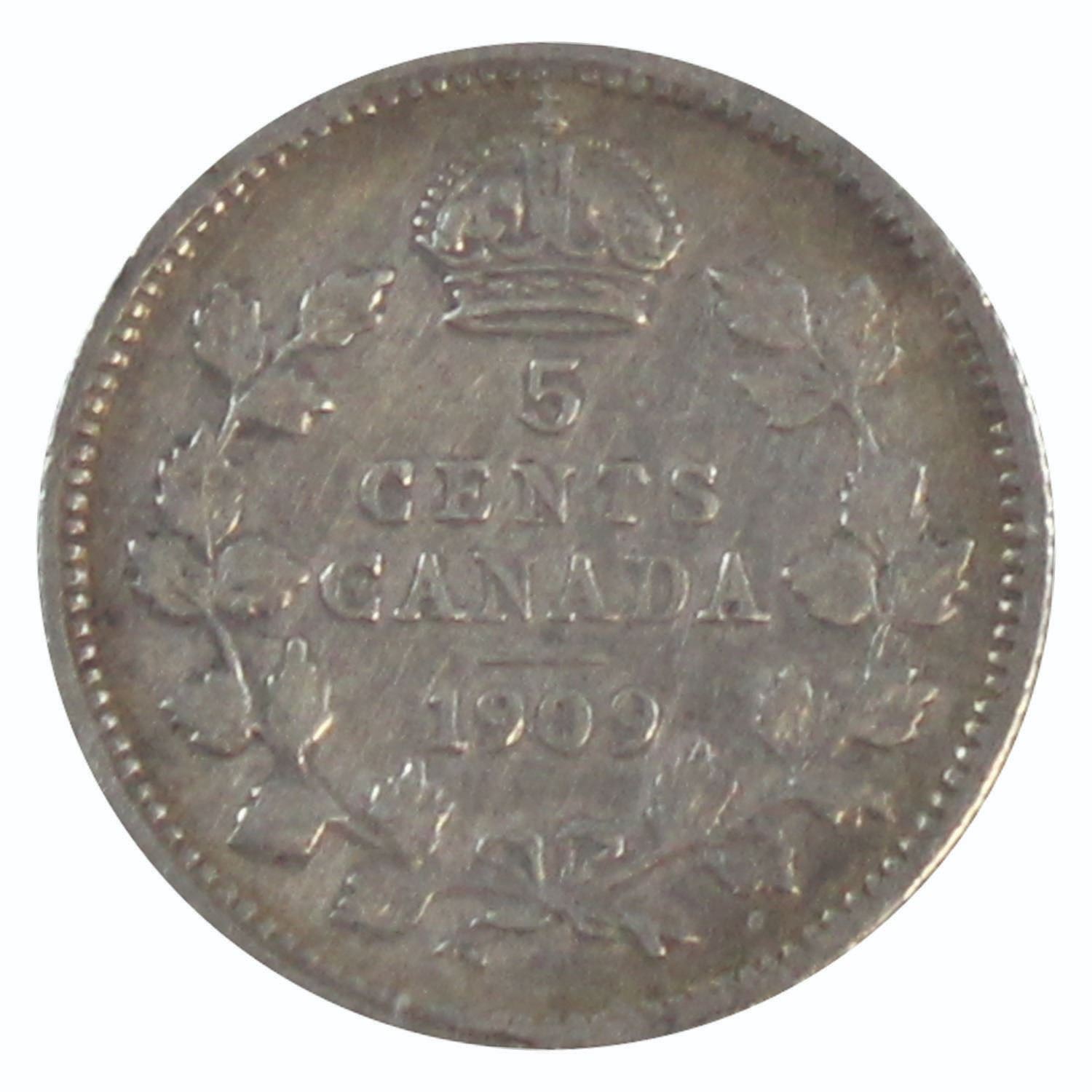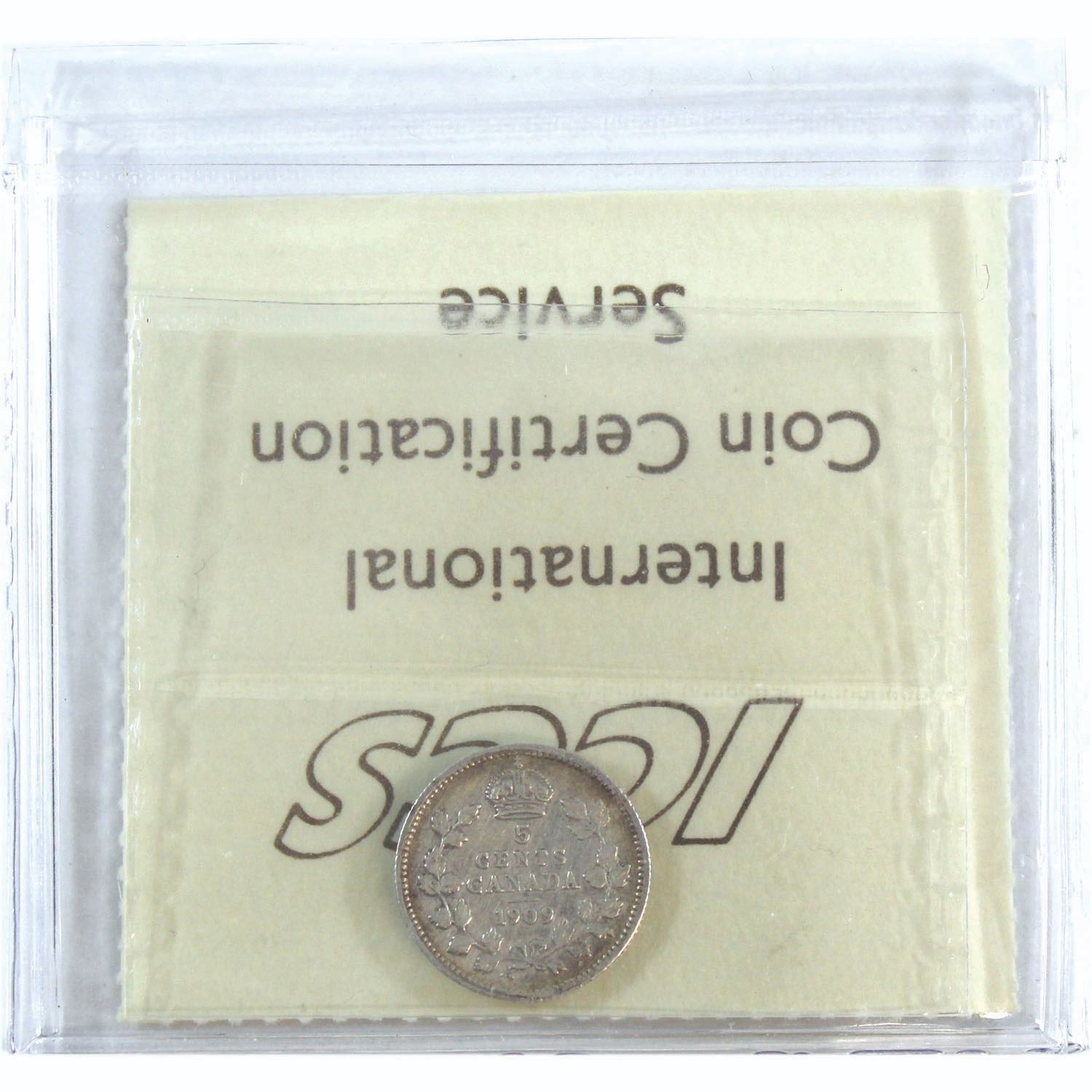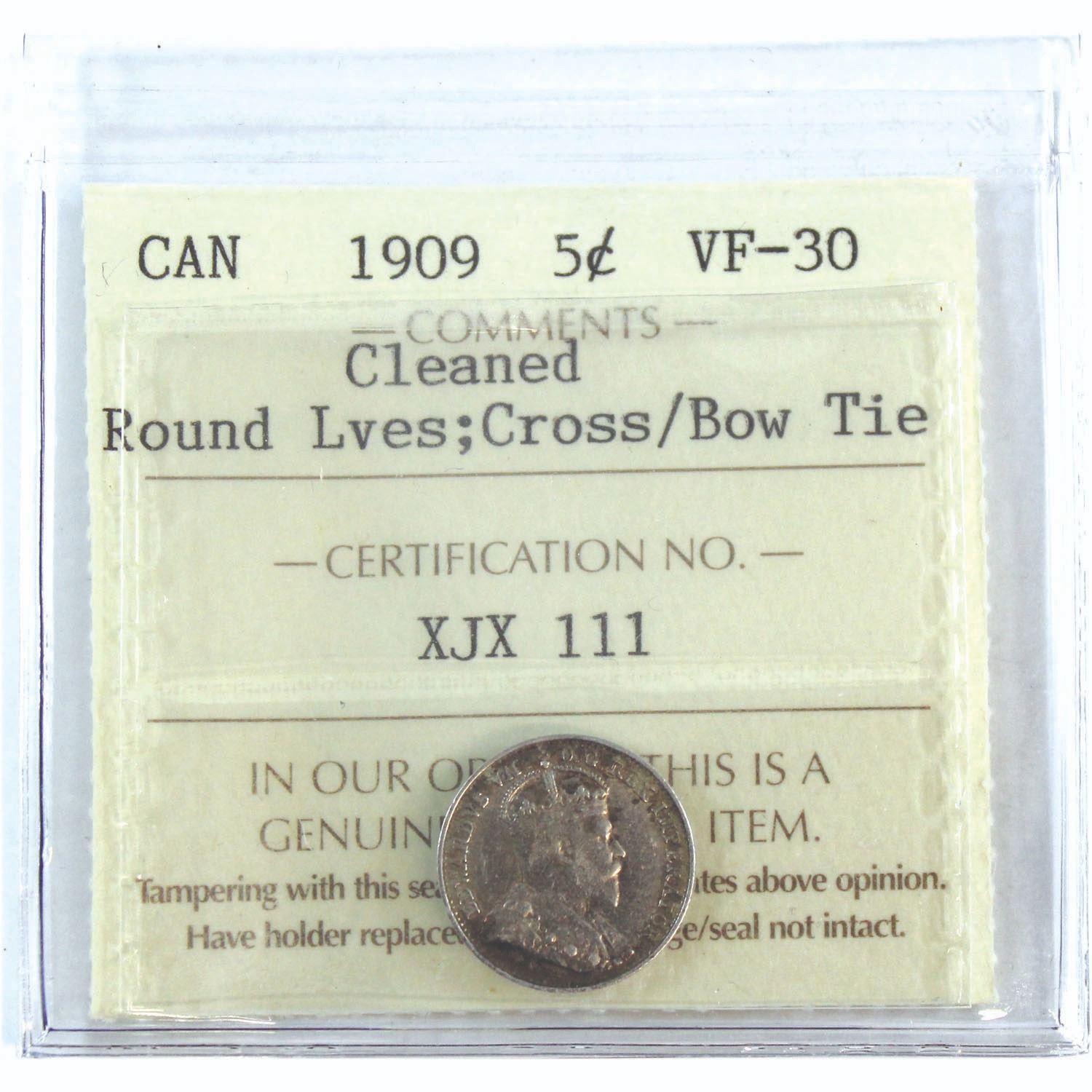 5-cent 1909 Round Leaves Cross/Bow Tie ICCS Certified VF-30 (Cleaned). Scarce variety!