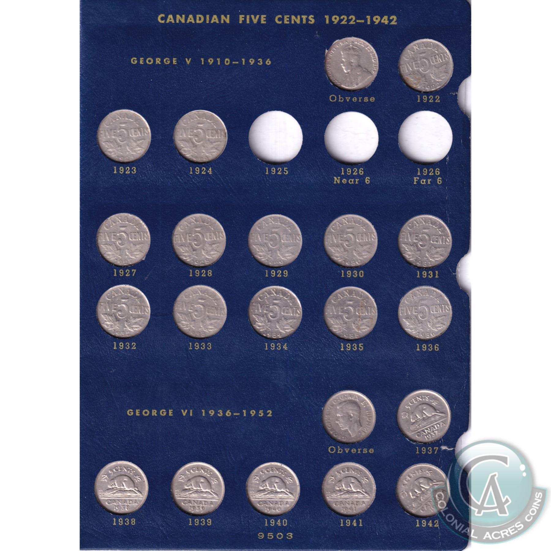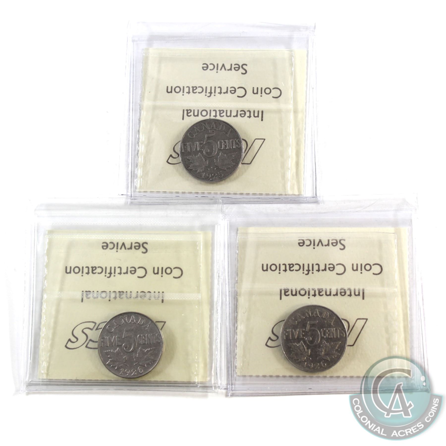 5-cent 1922-1966 Estate Lot Collection Including 1925 ICCS Certified VG-10, 1926 Far 6 ICCS VG-8 & 1926 Near 6 ICCS VG-10. 53pcs