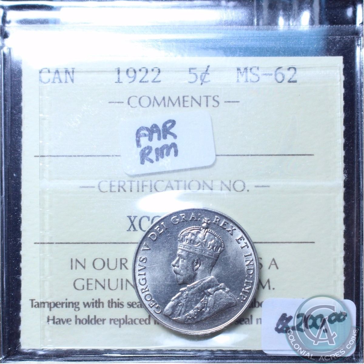 5-cent 1922 Far Rim ICCS Certified MS-62