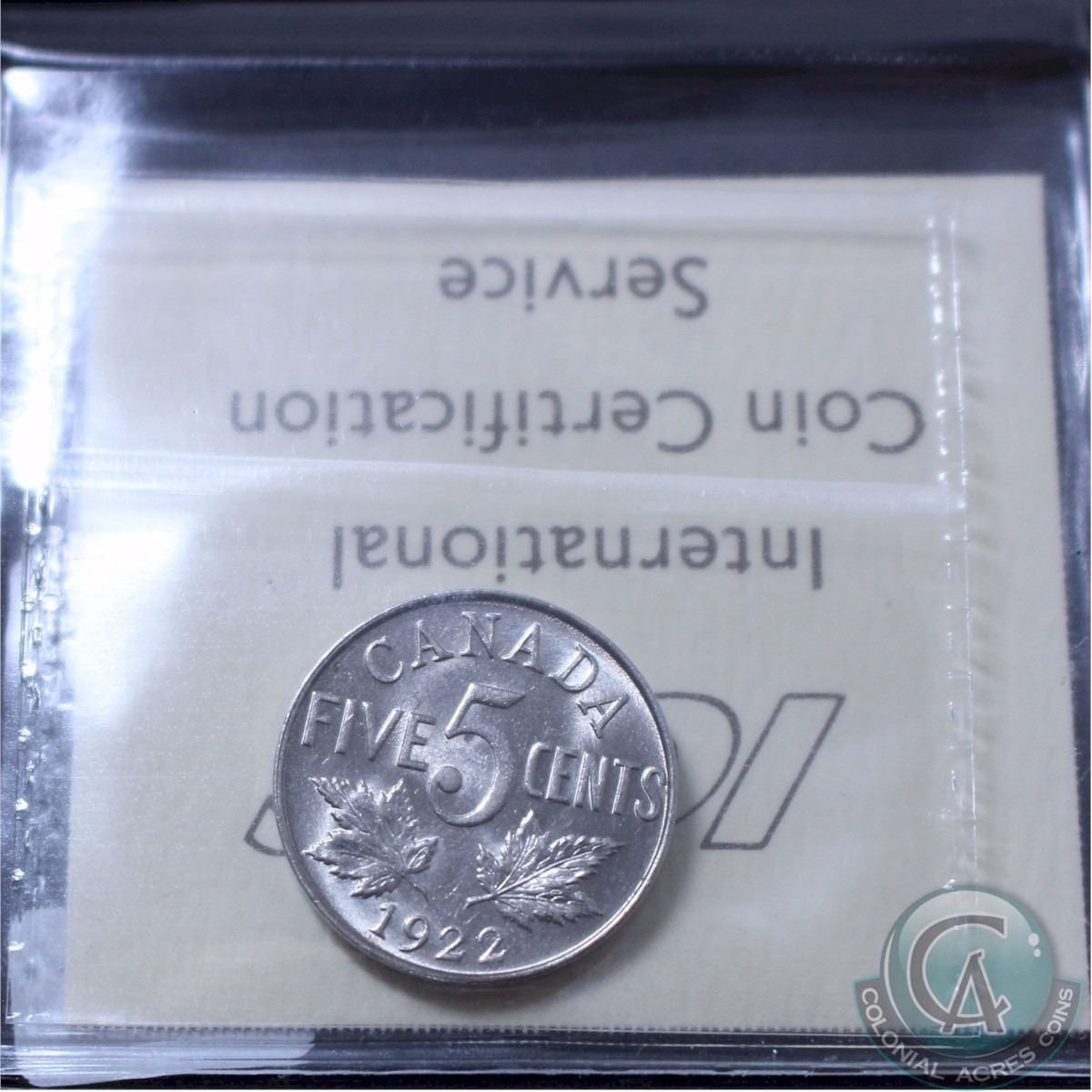 5-cent 1922 Near Rim ICCS Certified MS-64! A choice coin with rolling Luster fields.