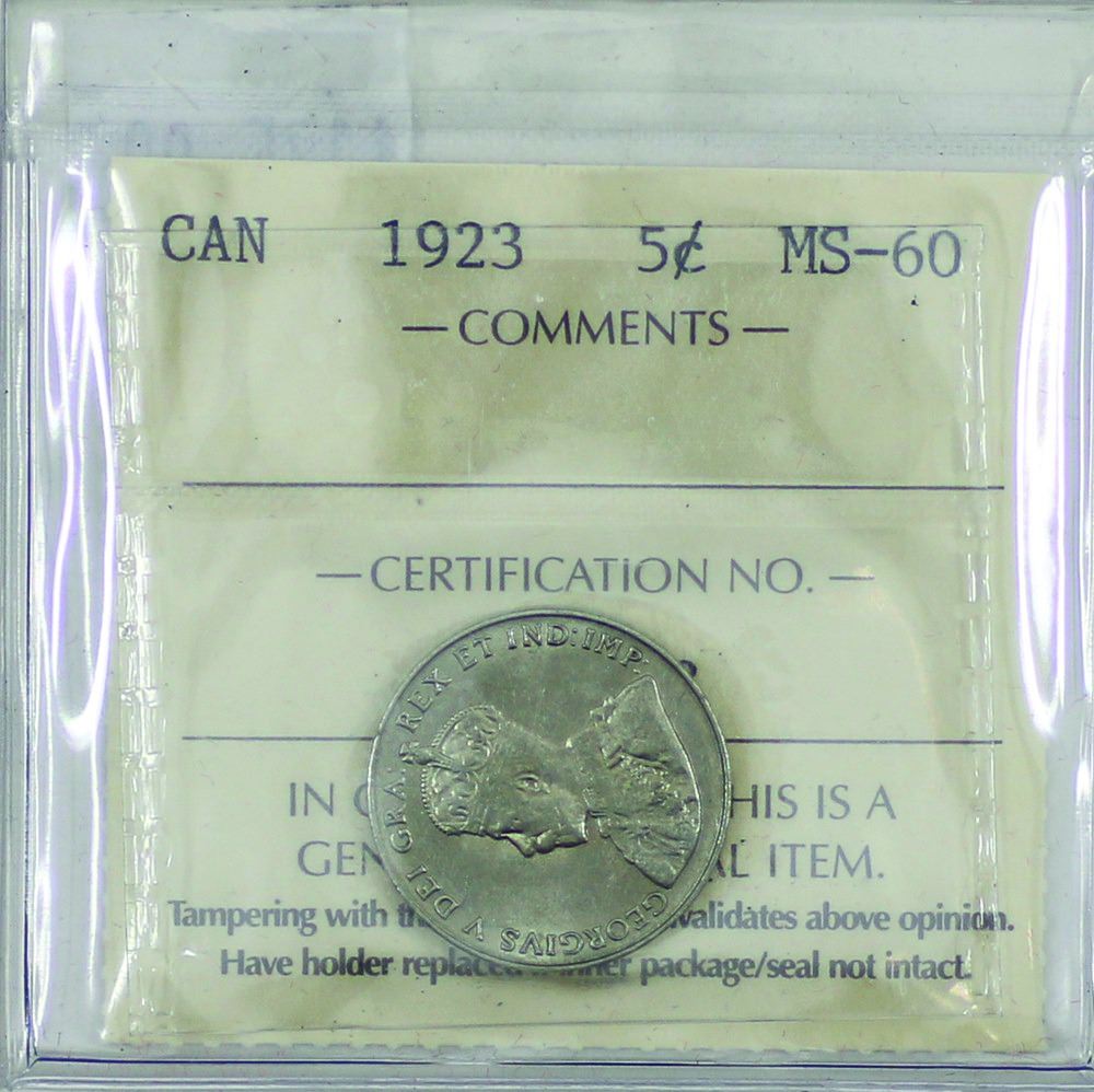 5-cent 1923 ICCS Certified MS-60.
