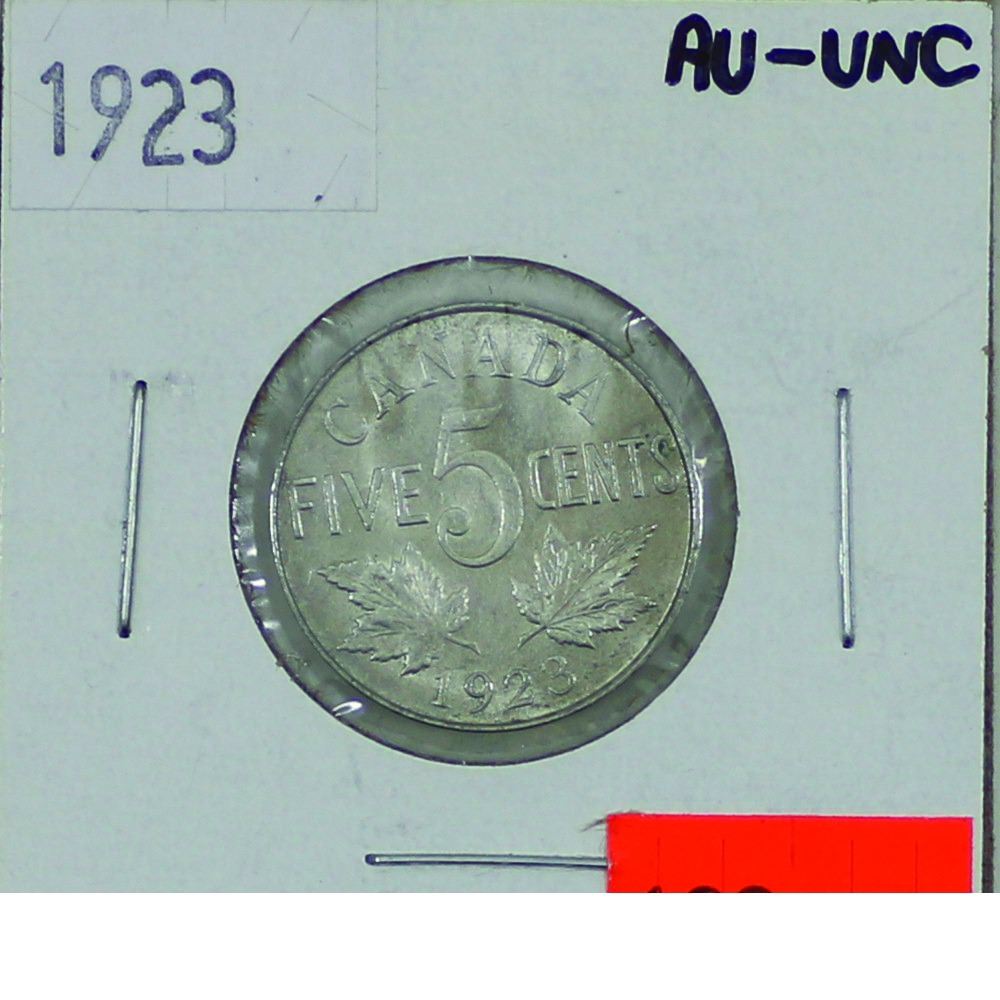 5-cent 1923 in AU-UNC condition. A flashy coin.