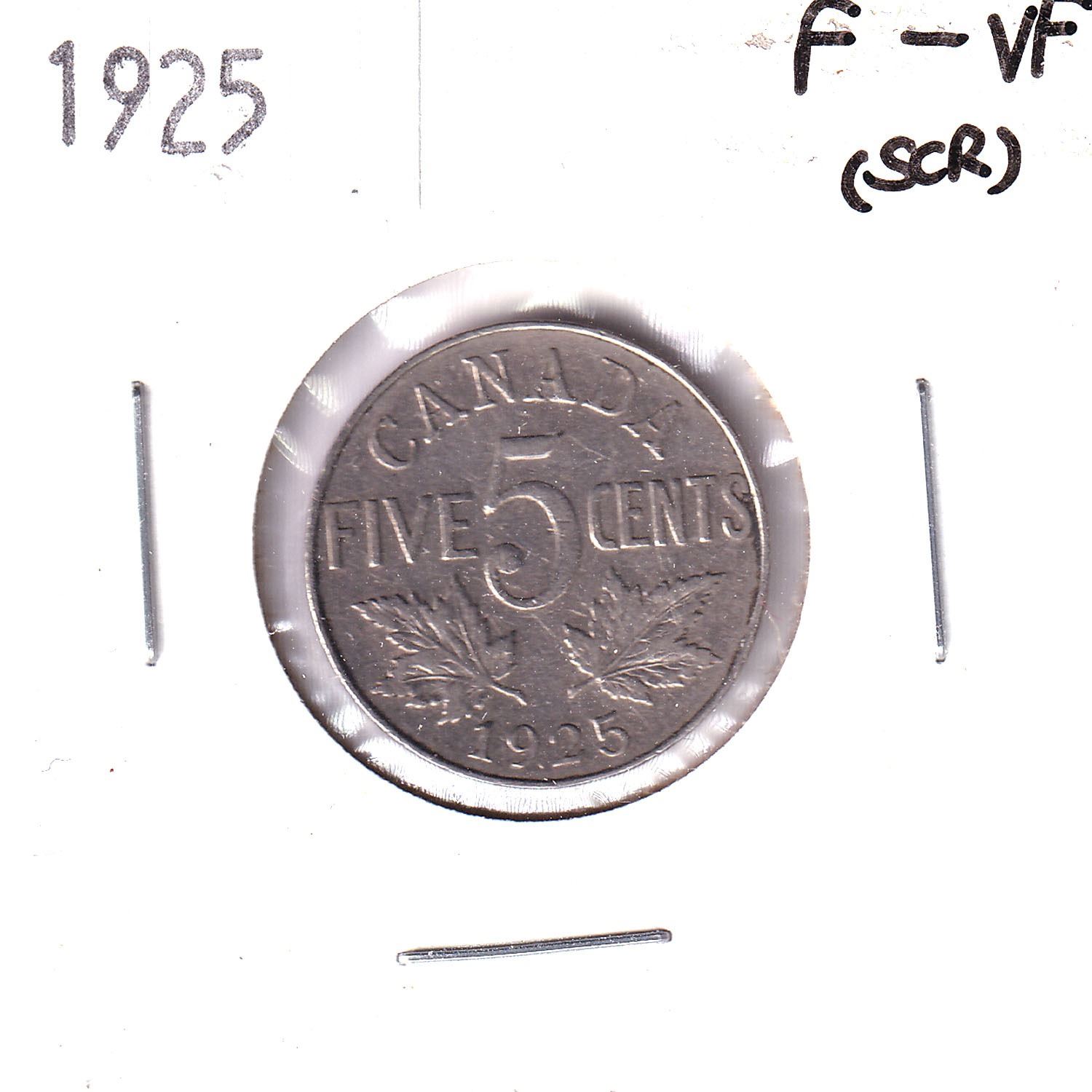5-cent 1925 F-VF (lightly scratched on obverse) *Key Date*