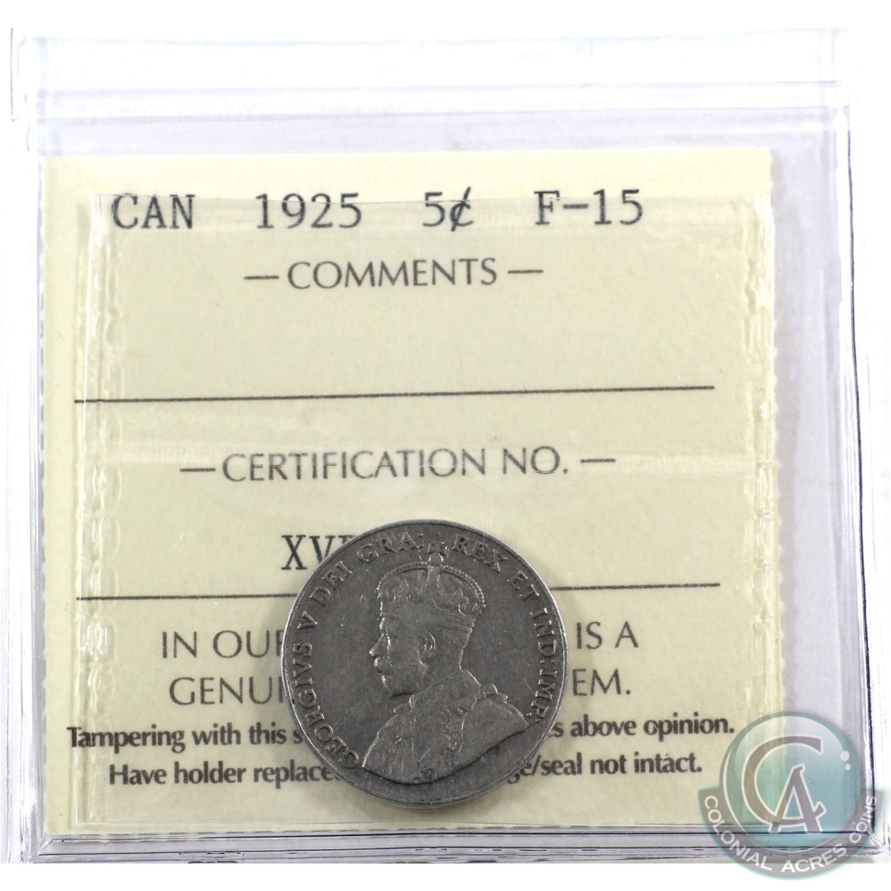 5-cent 1925 ICCS Certified F-15