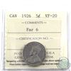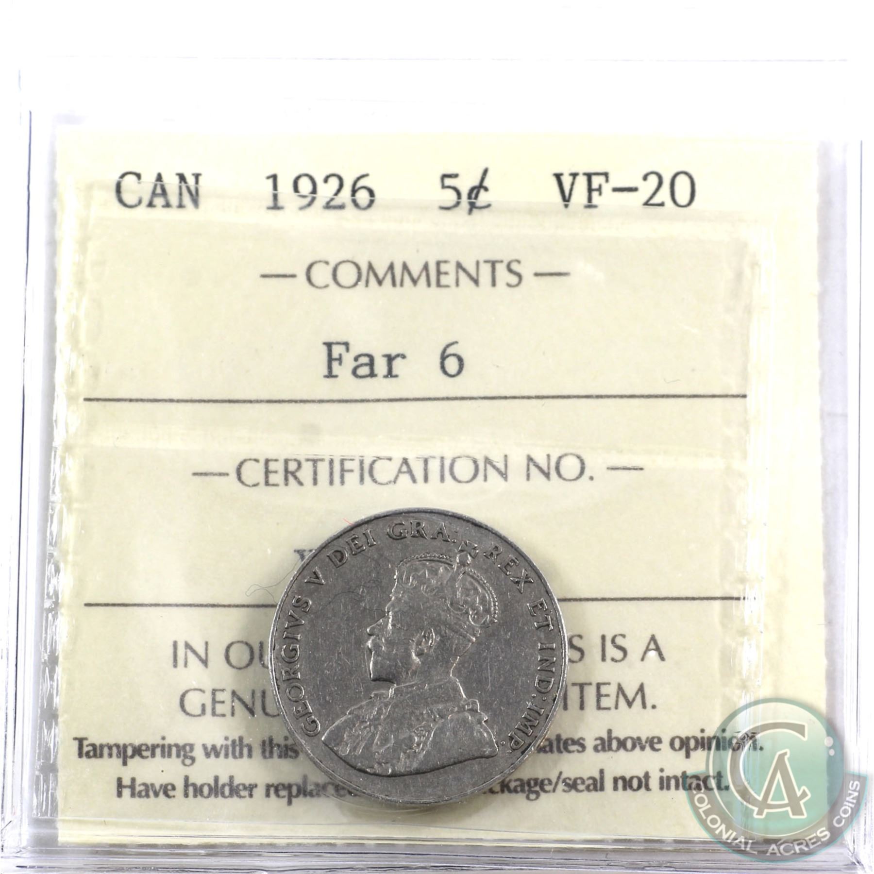 5-cent 1926 Far 6 ICCS Certified VF-20