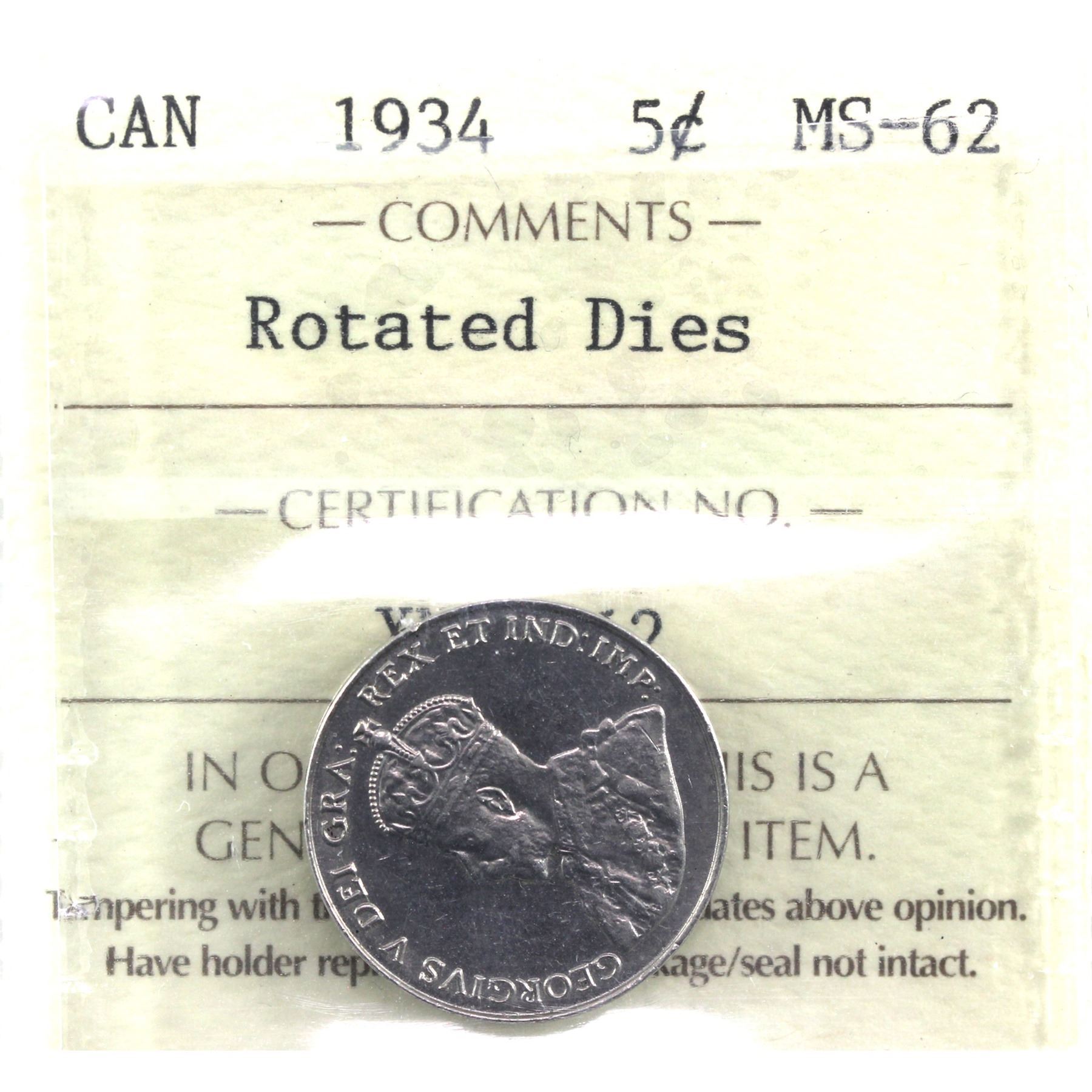5-cent 1934 Rotated Dies (Approx. 22.5 Degree) ICCS Certified MS-62