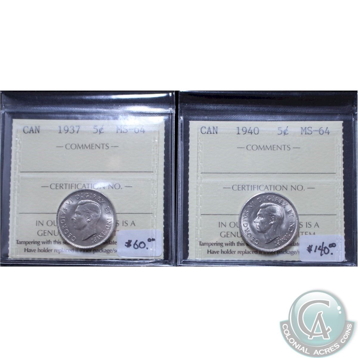 5-cent 1937 & 1940 both ICCS Certified MS-64. (2pcs)