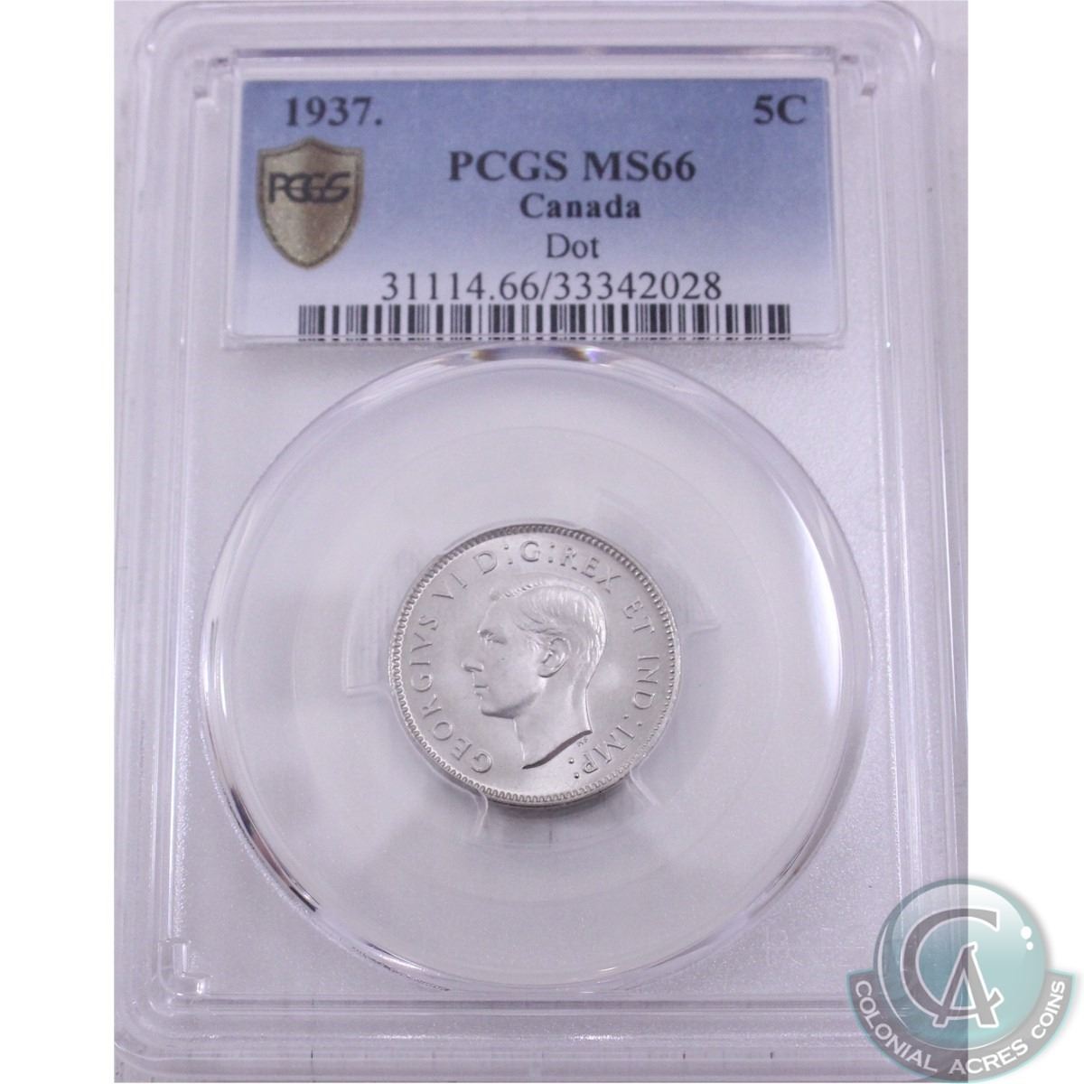 5-cent 1937 DOT PCGS Certified MS-66. TOP 3! Tied for the highest grade by PCGS with only 2 others. An exceptional coin with savvy satin fields and stunning eye appeal.