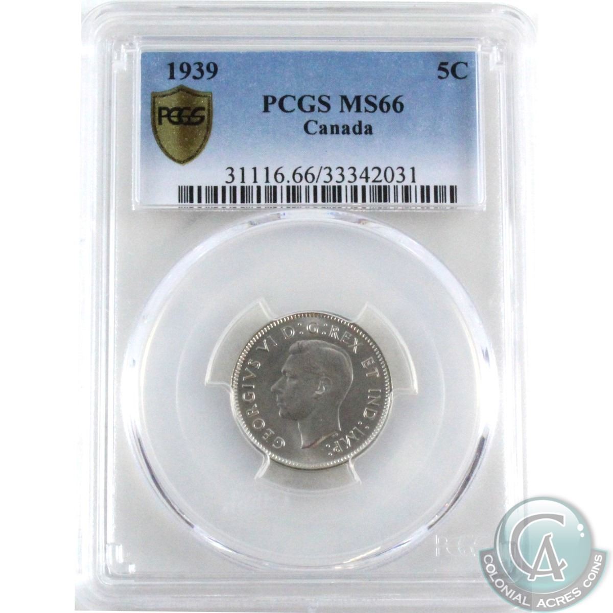 5-cent 1939 PCGS Certified MS-66. An overall exception strike coin with Soft Satin Fields. Only 1 coin ever graded higher! (Low POP)