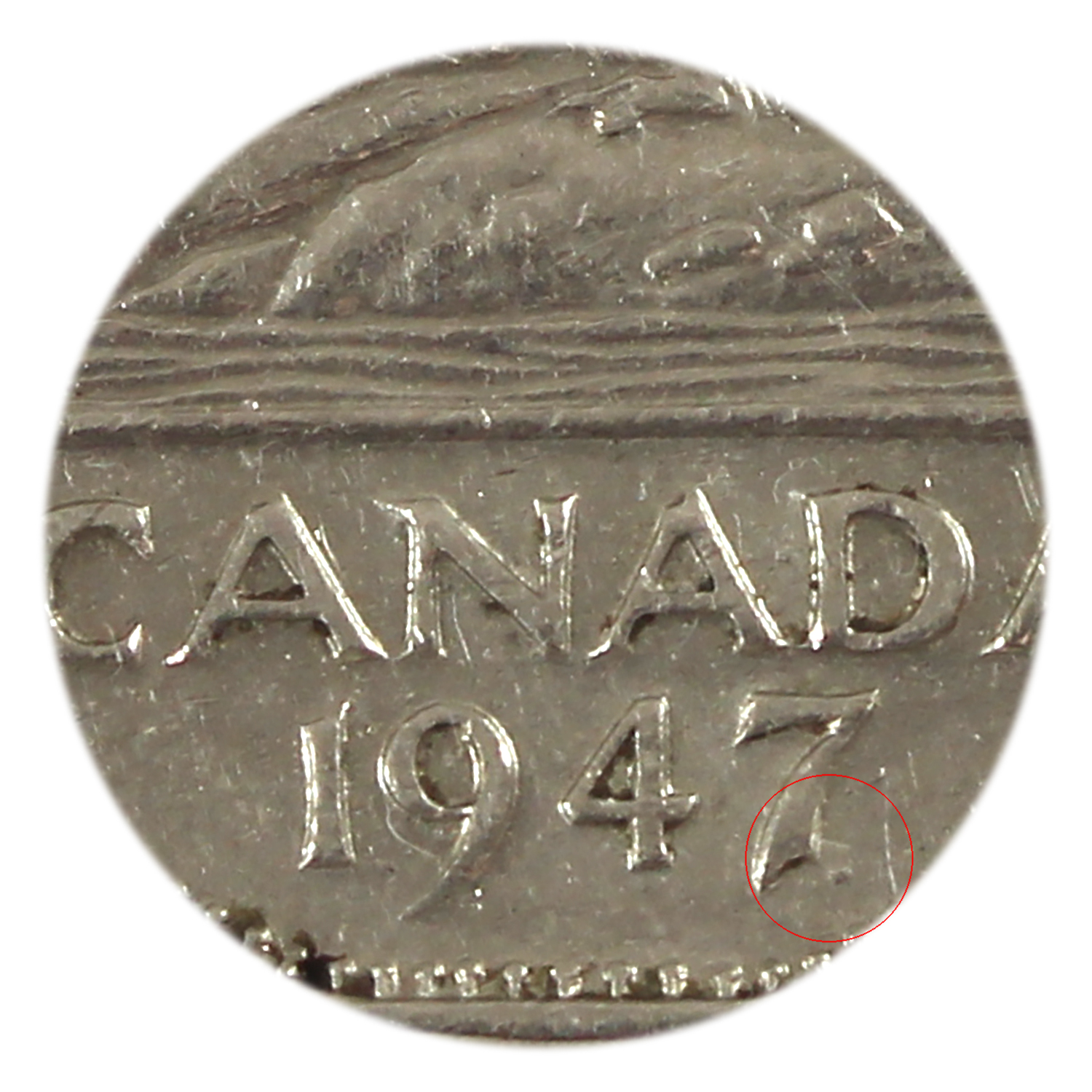 5-cent 1947 Dot & Dot Between A & D of Canada VF