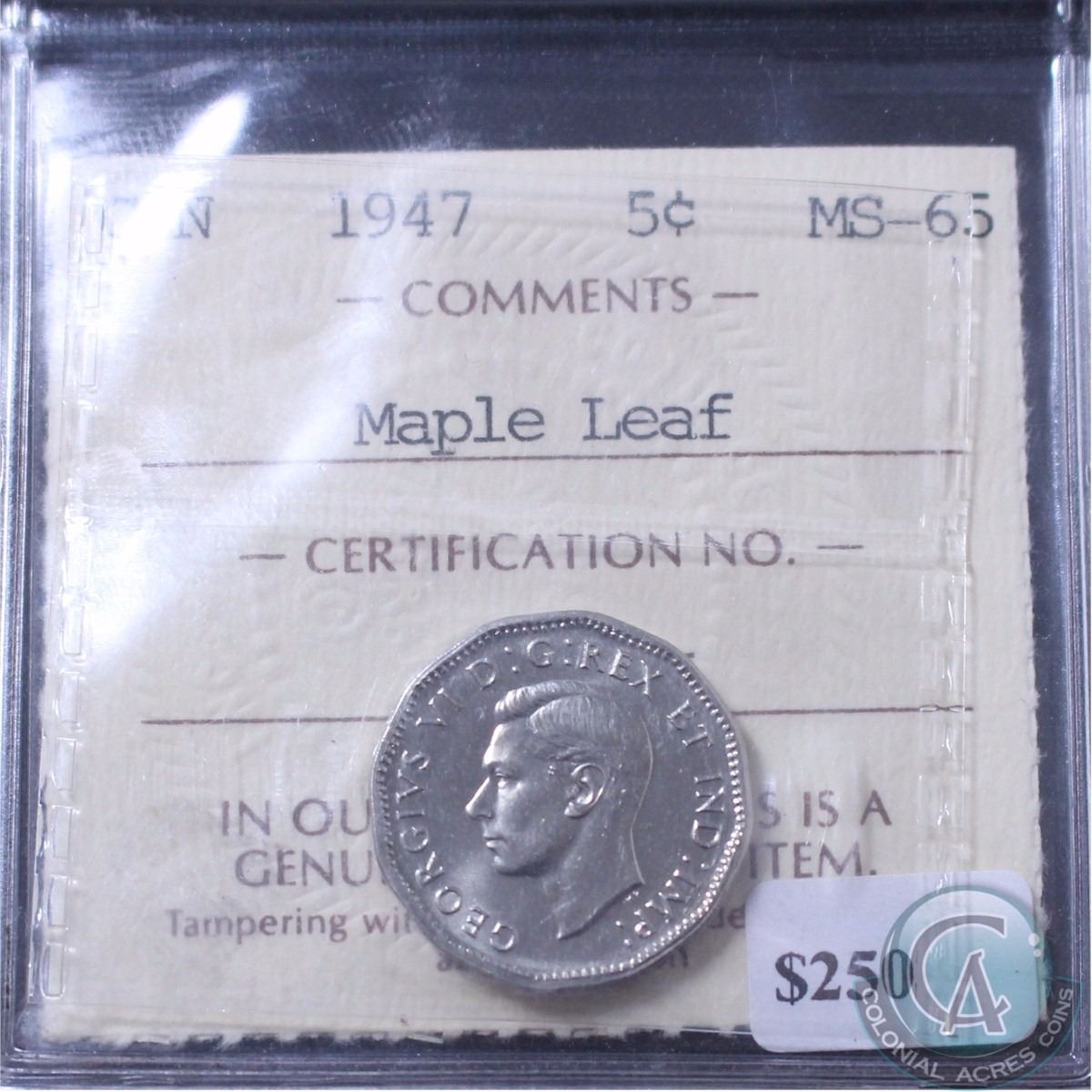 5-cent 1947 Maple Leaf ICCS Certified MS-65