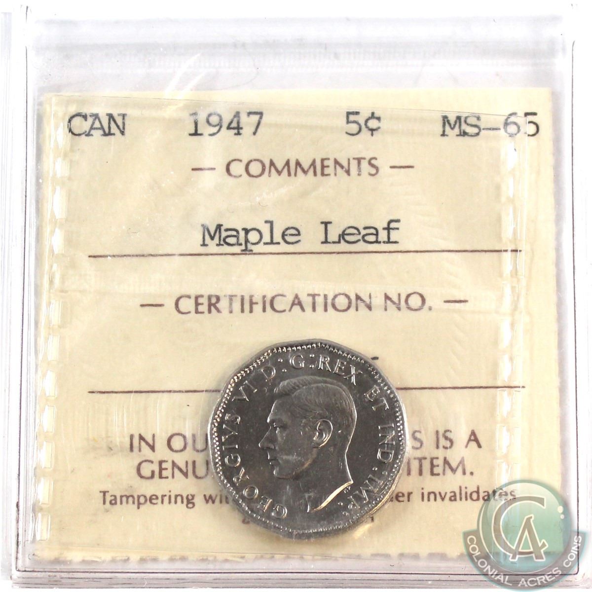 5-cent 1947 Maple Leaf ICCS Certified MS-65