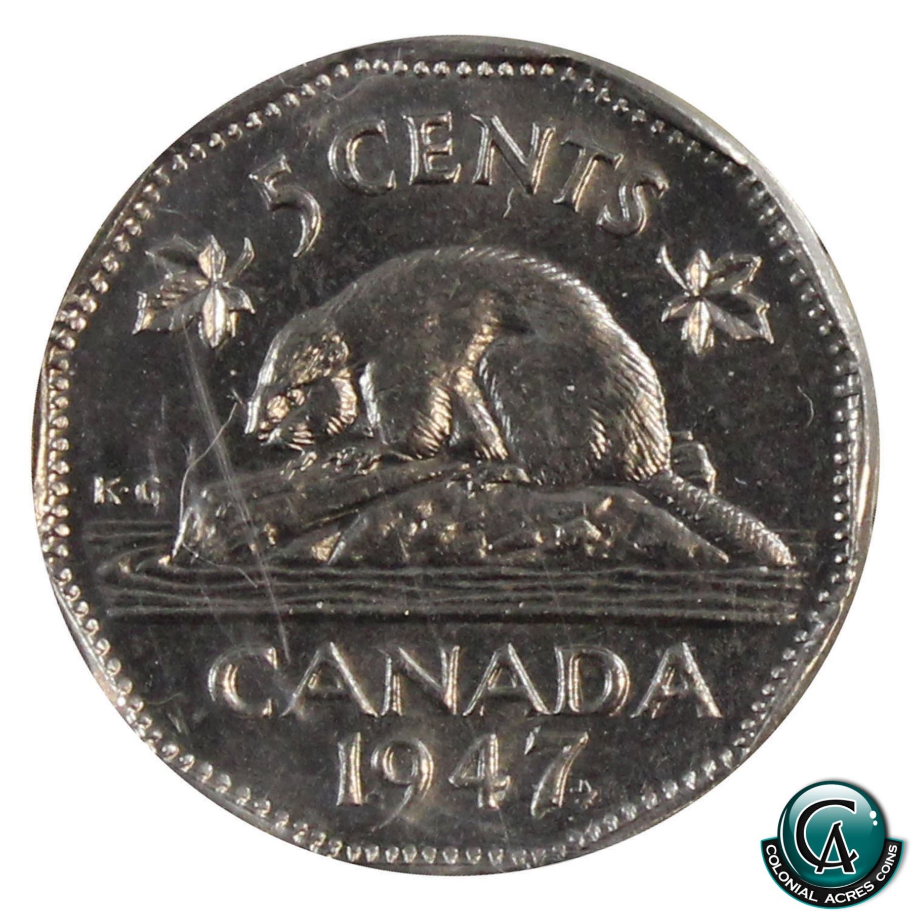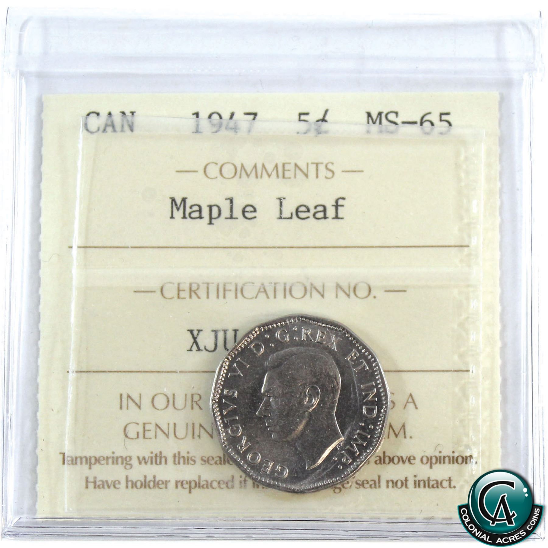 5-cent 1947 Maple Leaf ICCS Certified MS-65