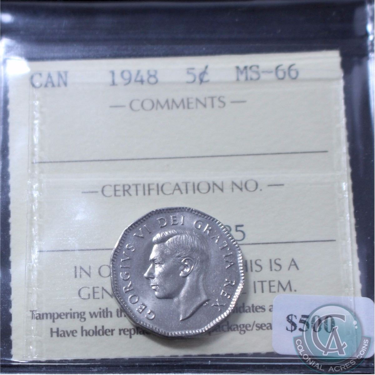 5-cent 1948 ICCS Certified MS-66. Tied for Finest Known.