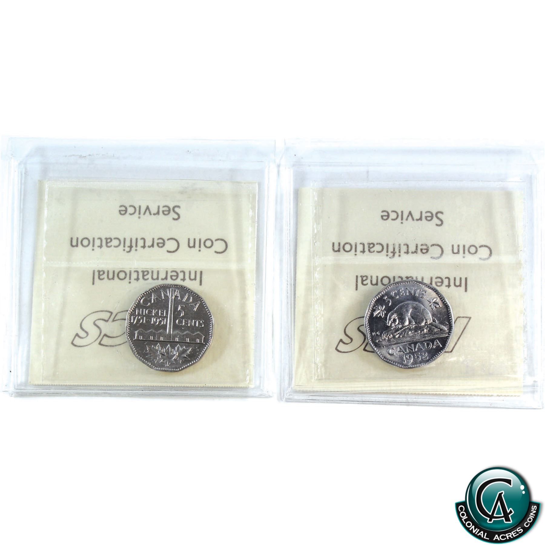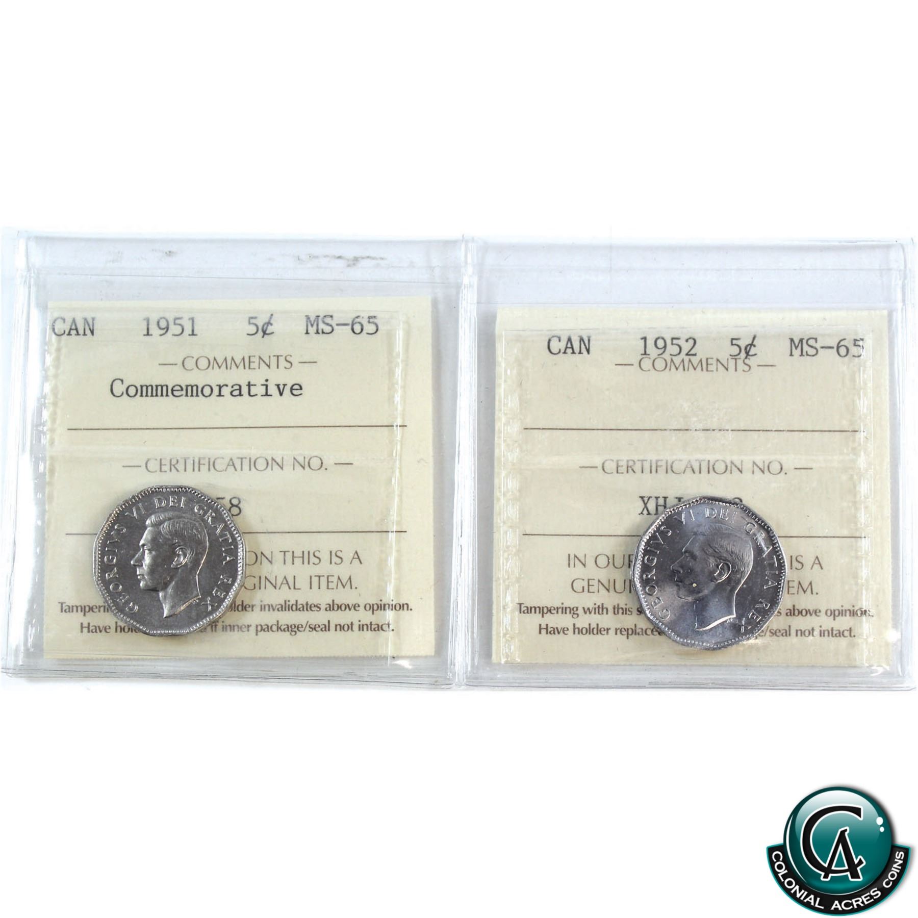 5-cent 1951 Commemorative & 1952 ICCS Certified MS-65. 2pcs