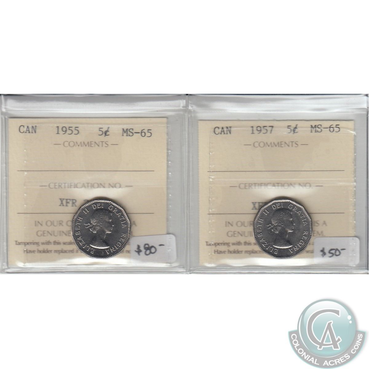 5-cent 1955 & 1957 ICCS Certified MS-65 (2pcs)