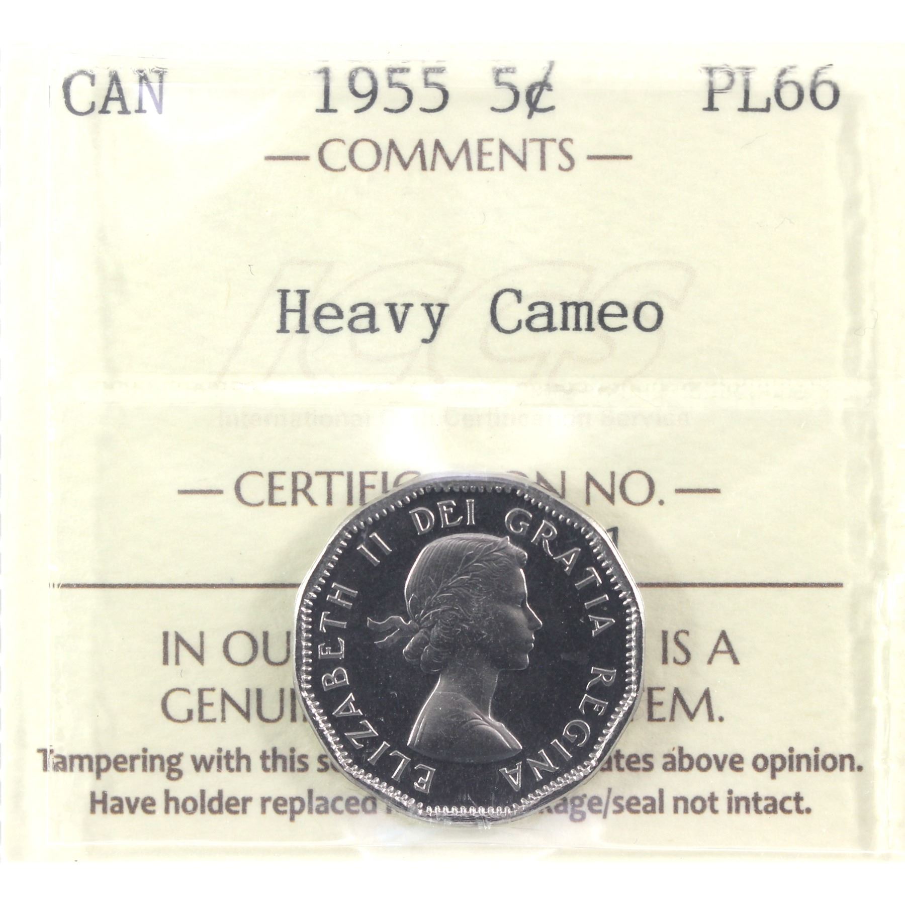 5-cent 1955 ICCS Certified PL-66 Heavy Cameo!