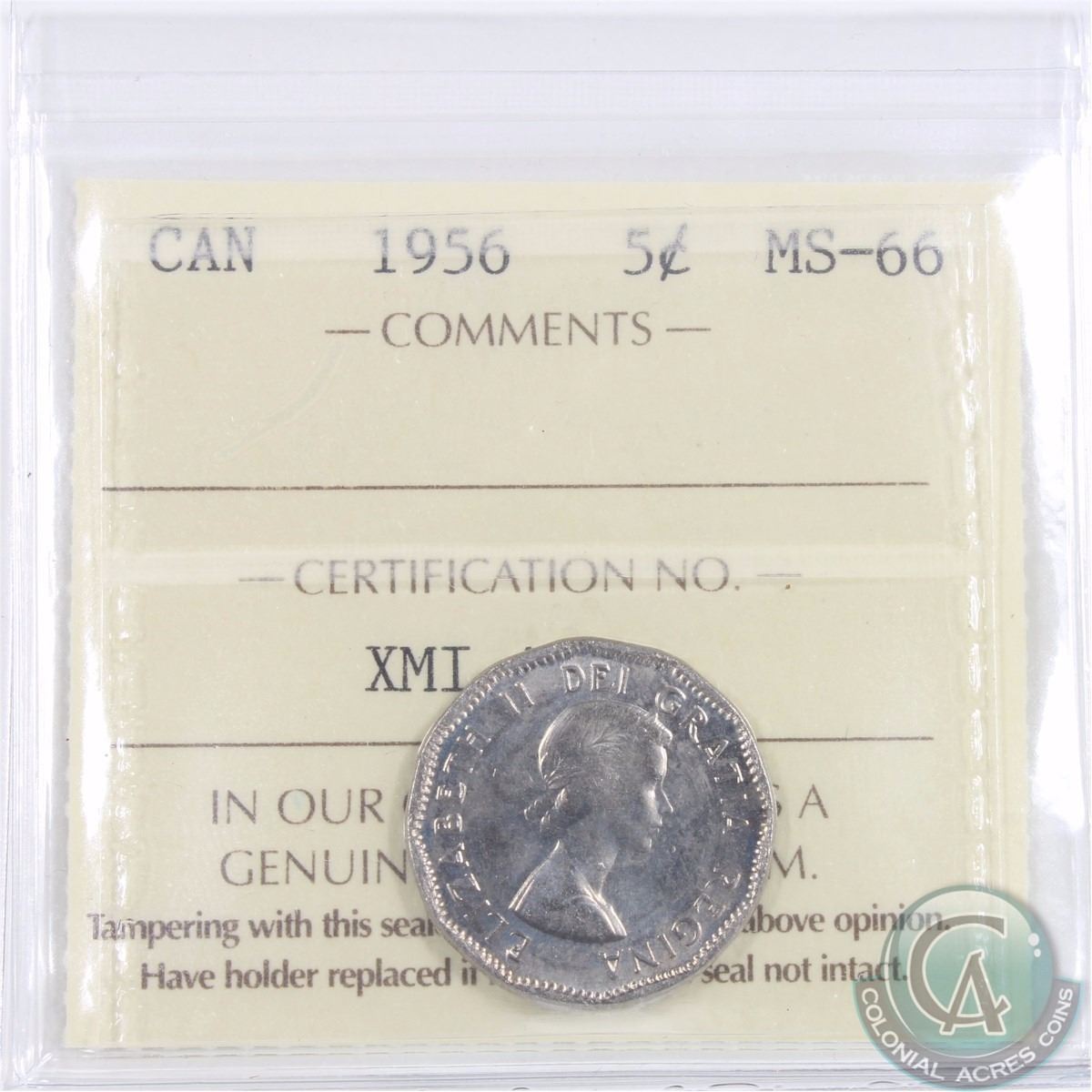 5-cent 1956 ICCS Certified MS-66. Tied with 4 others for finest known