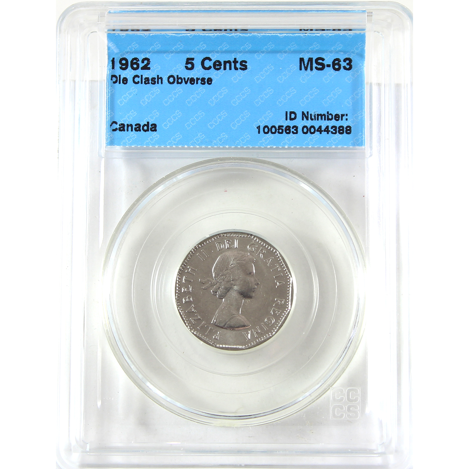 5-cent 1962 Die Clash Obverse CCCS MS63
