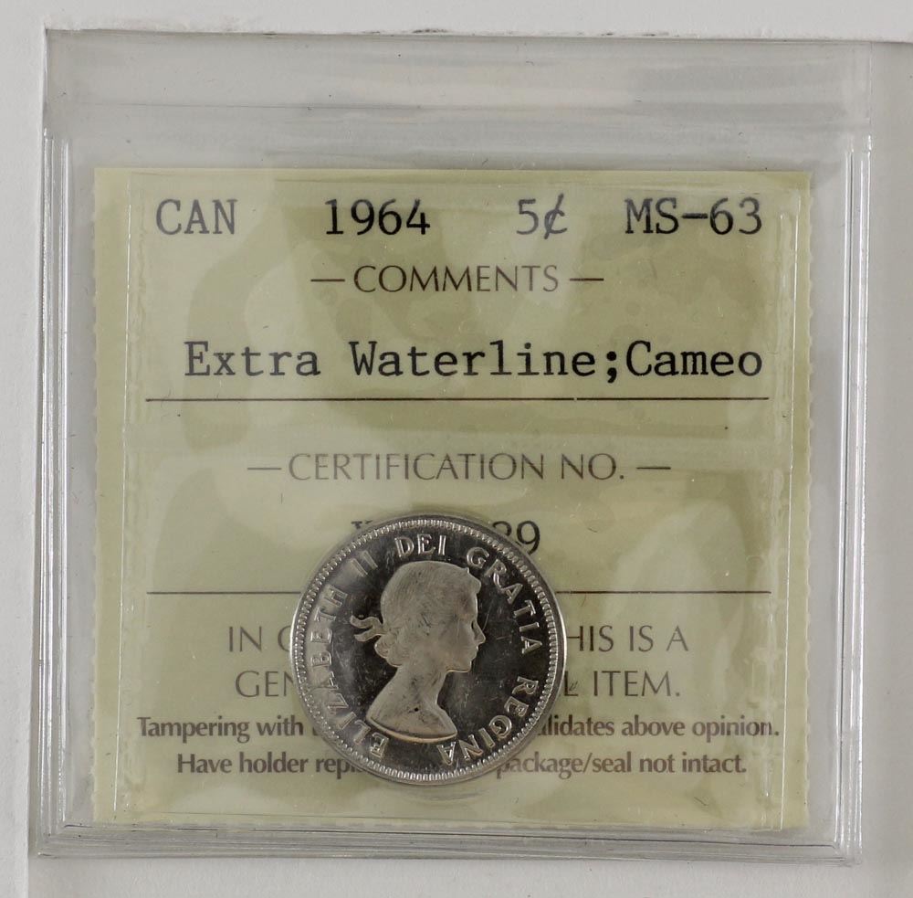 5-cent 1964 Extra Water Line ICCS MS63 Cameo