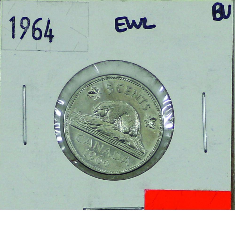 5-cent 1964 Extra Water Line, in Brilliant Uncirculated condition. Coin has a soft hint of Cameo.