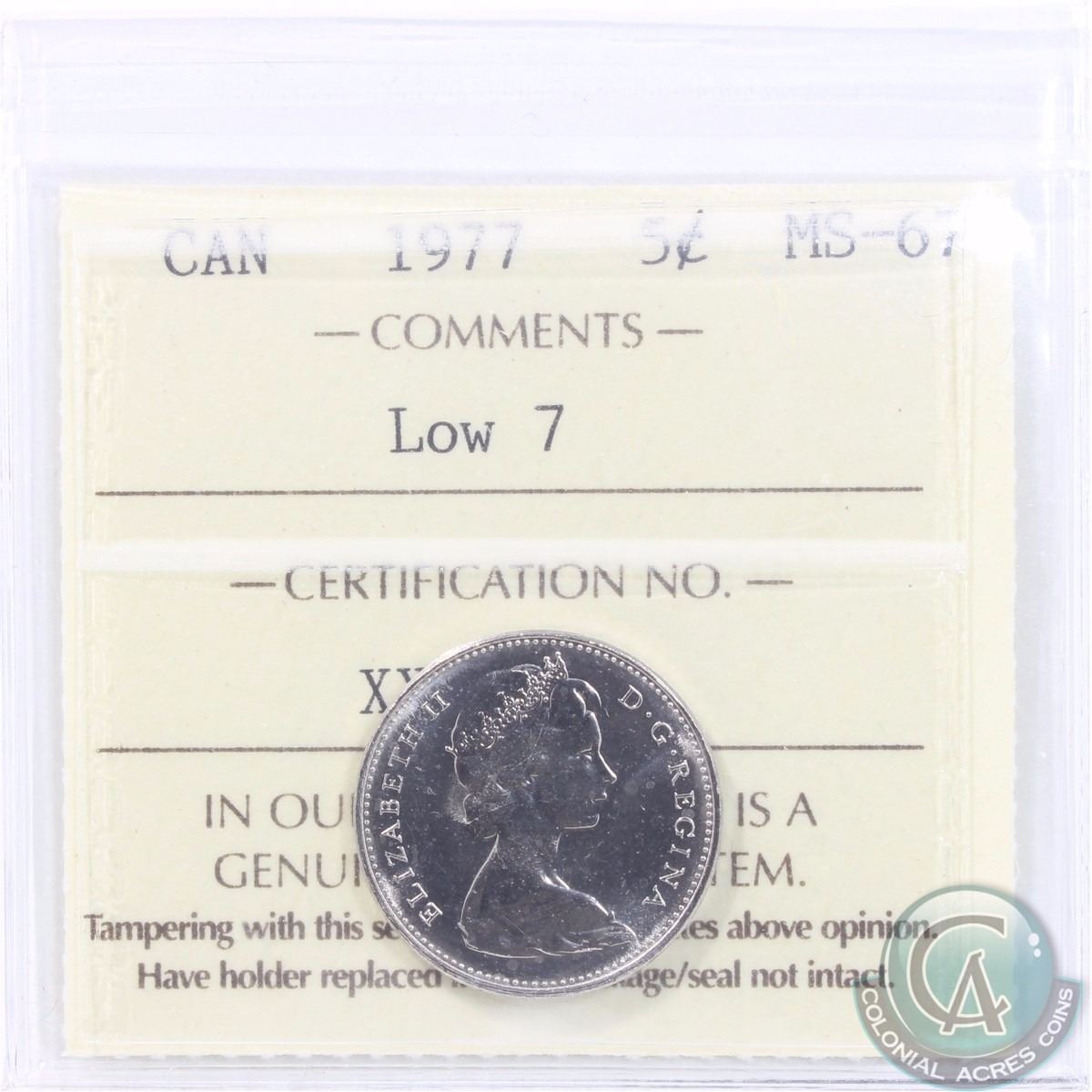 5-cent 1977 Low 7 ICCS Certified MS-67. Finest known example by ICCS!