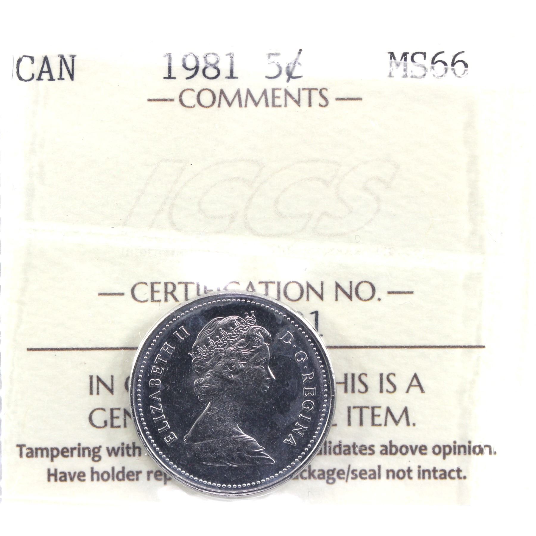 5-cent 1981 ICCS Certified MS-66 * High Grade*