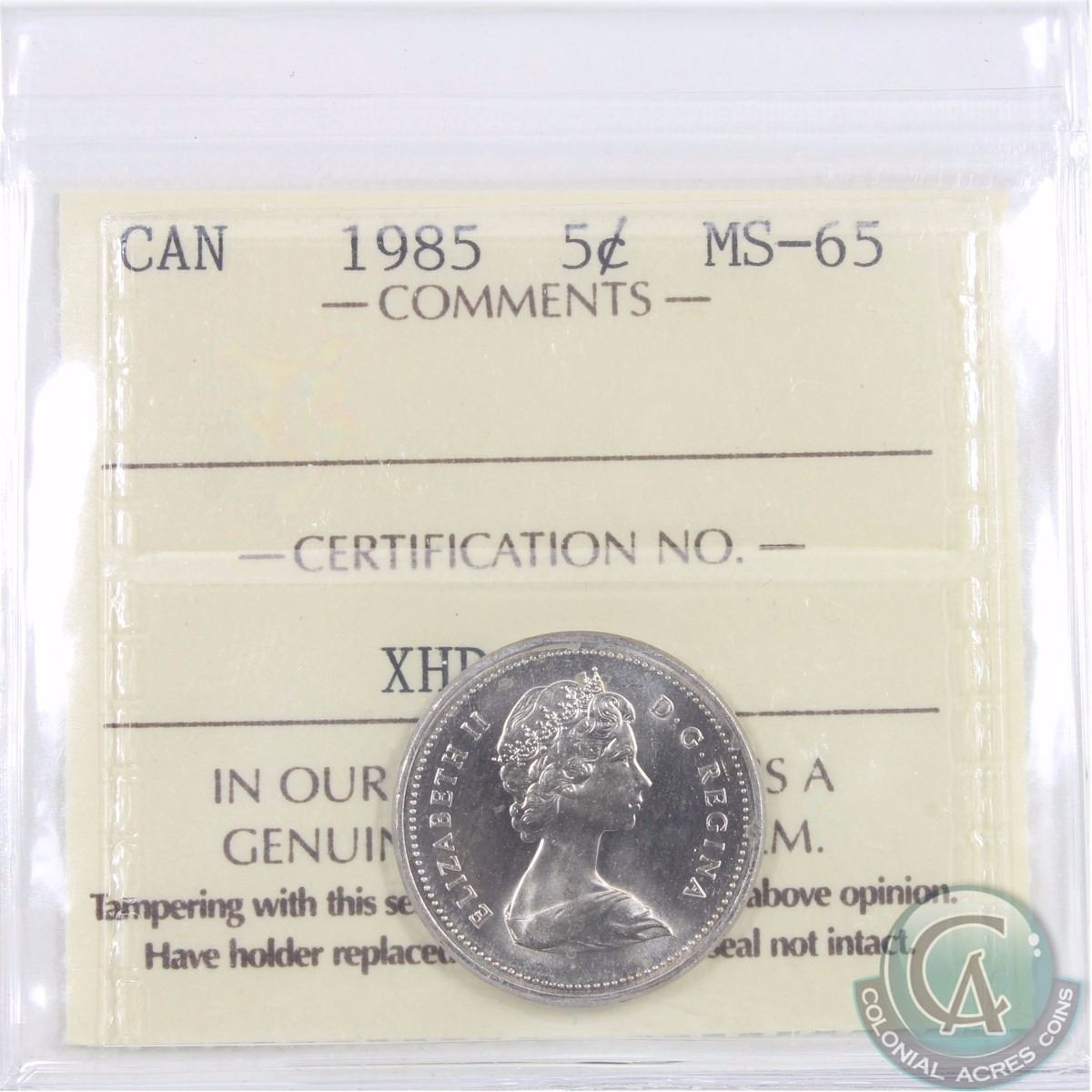 5-cent 1985 ICCS Certified MS-65