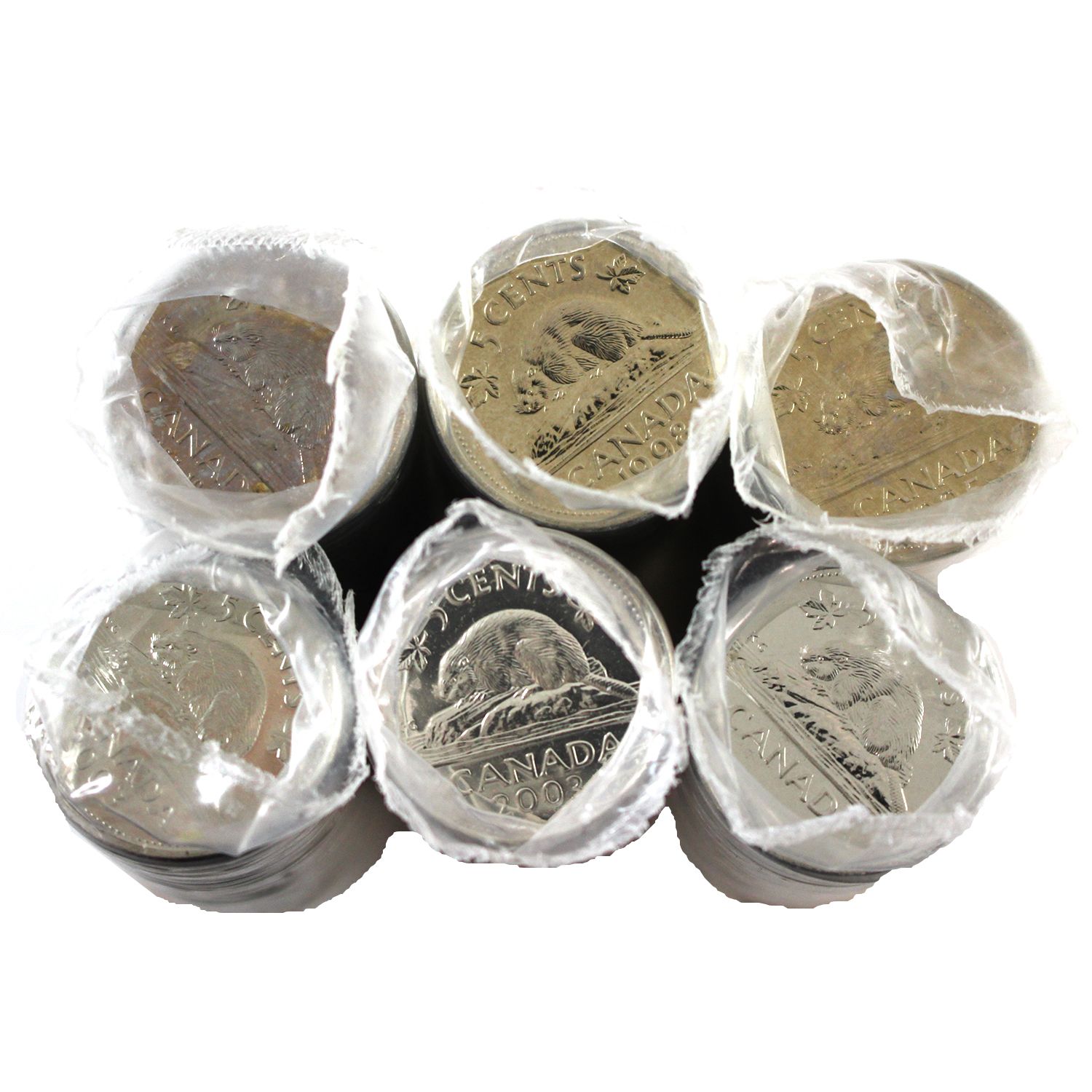 5-cent 1992,1995,1998, 2002P & 2x 2003P OE Original Rolls of 40pcs. 6 rolls