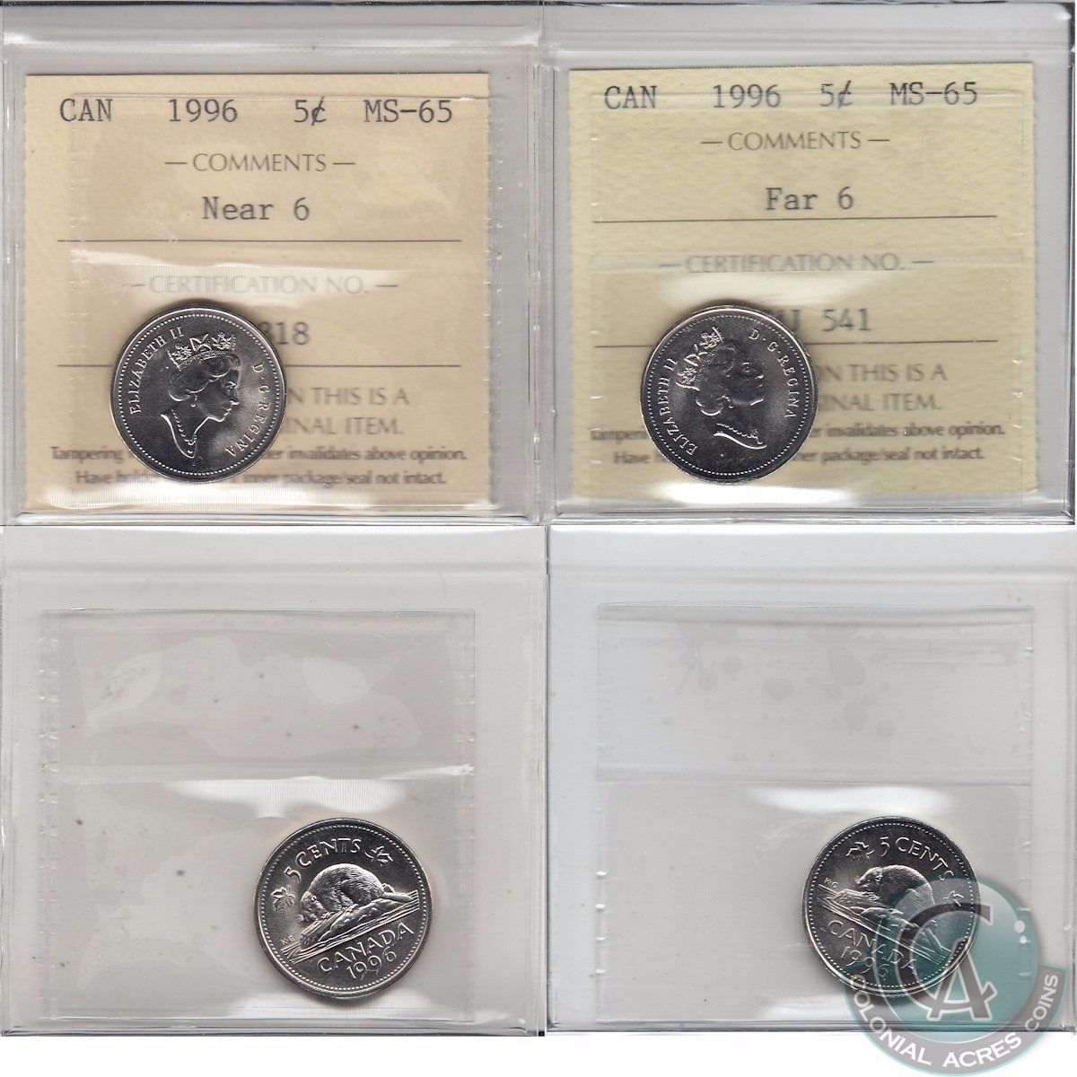 5-cent 1996 Far 6 & 1996 Near 6 both ICCS Certified MS-65. 2pcs