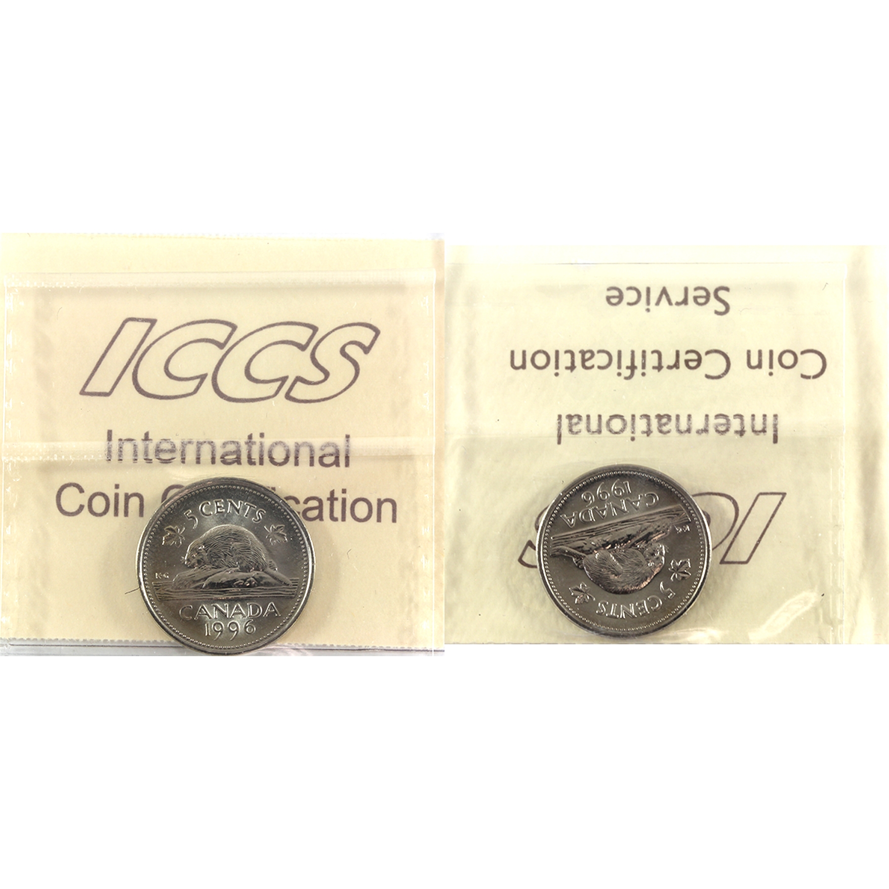 5-cent 1996 Near 6 & Far 6 ICCS MS65. 2pcs.